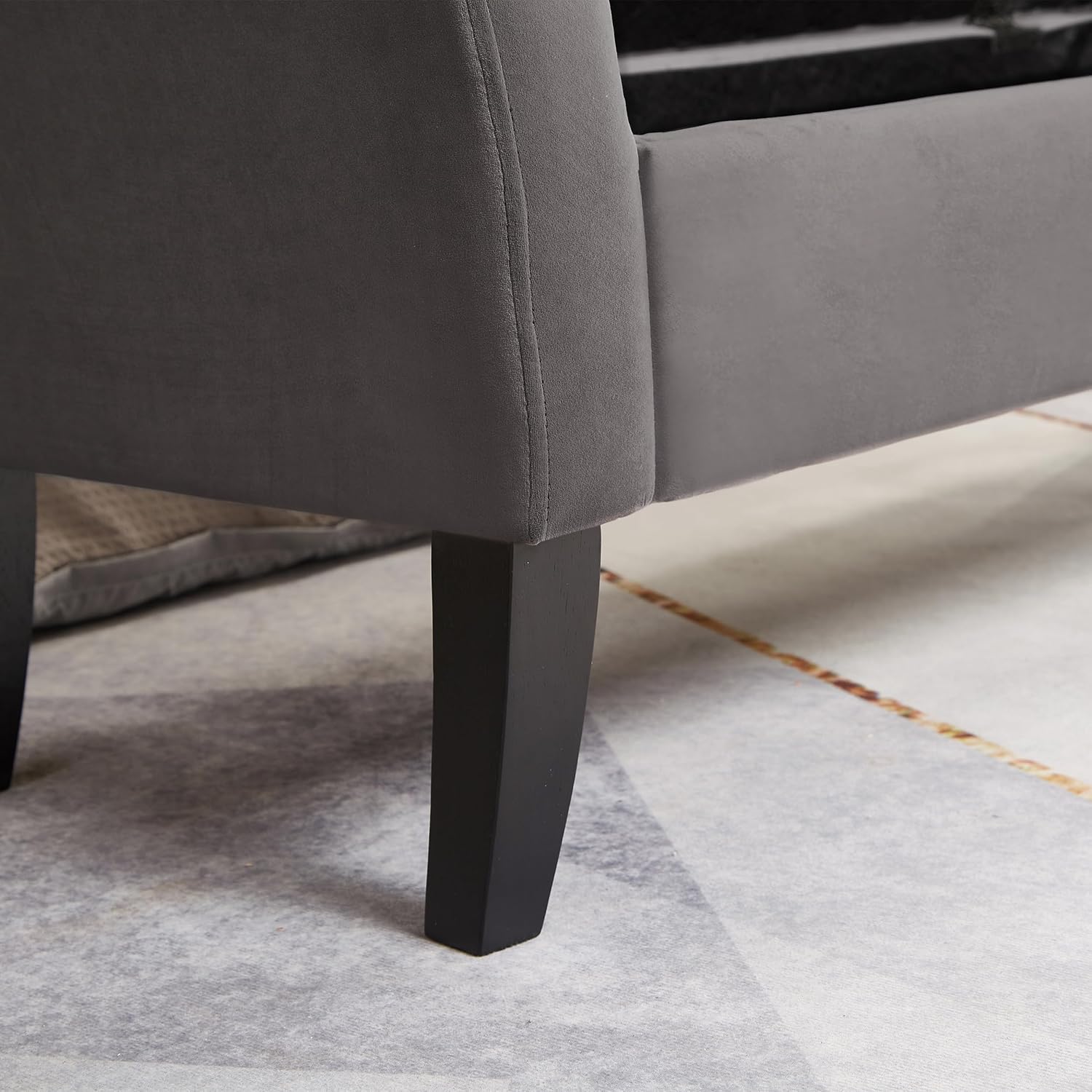 • ·Modern Design: Our storage ottoman showcases deep button tufting and elegantly rolled arms, capturing the essence of a truly modern piece. With a sophisticated structure, this bedroom storage bench embodies a minimalist style that prioritizes comfort and practicality.Diamond Stitch Button Tufting: The button-tufted stitching on the lid enhances the modern designthis of this end of bed bench. The diamond stitch pattern introduces subtle texture while maintaining optimal comfort.
