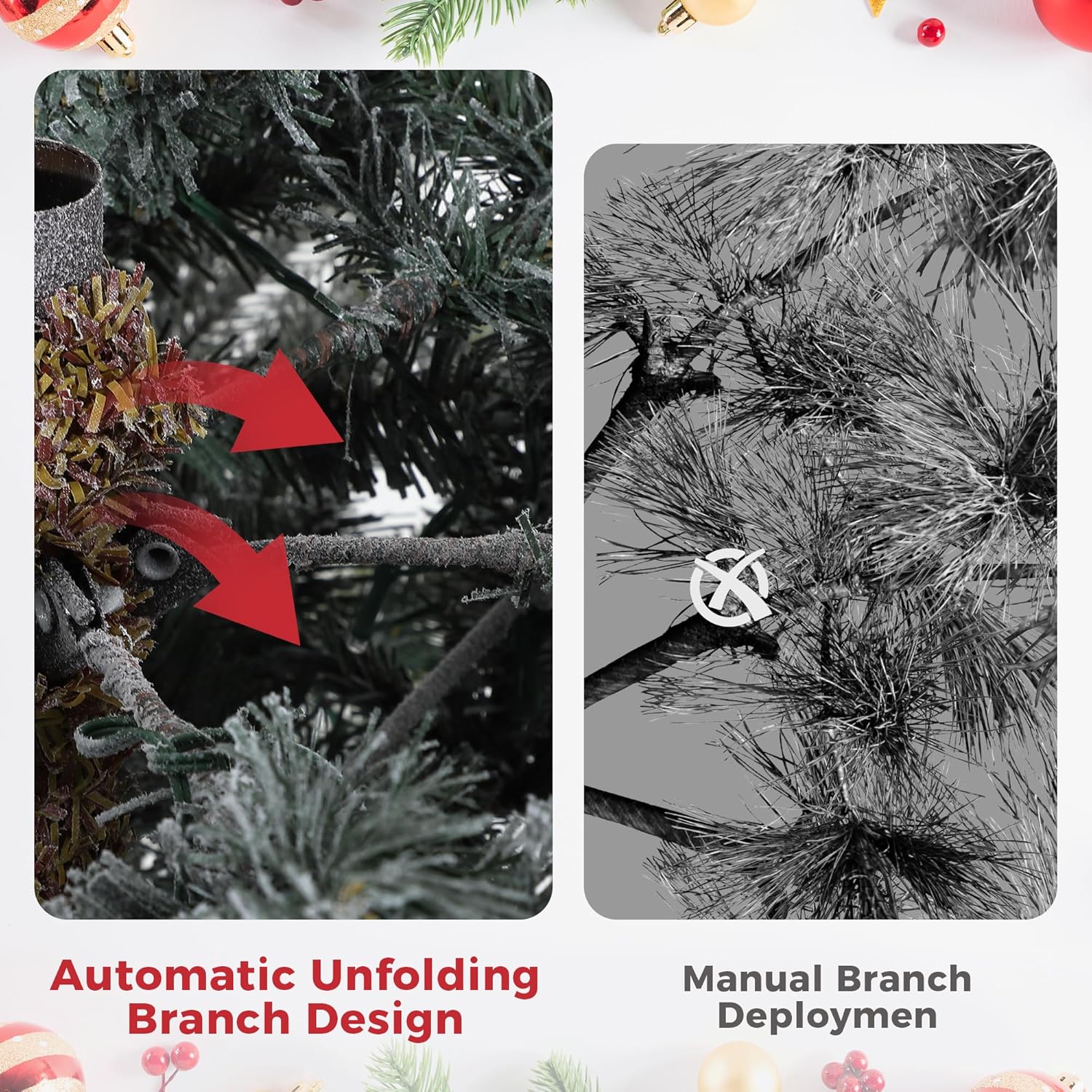 • Convenient Storage Solution:Post-holiday storage is effortless. The tree features a modular trunk design that easily separates into sections, and the base conveniently folds down. This smart collapsible system allows for remarkably space-efficient storage, ready for the next joyous season.