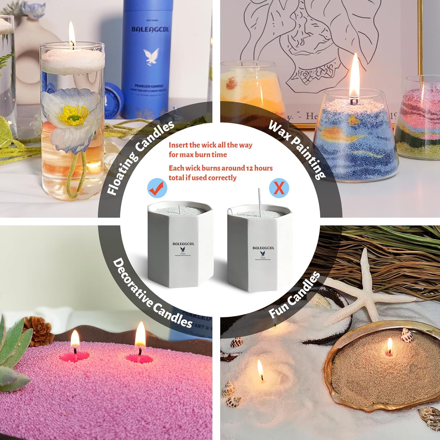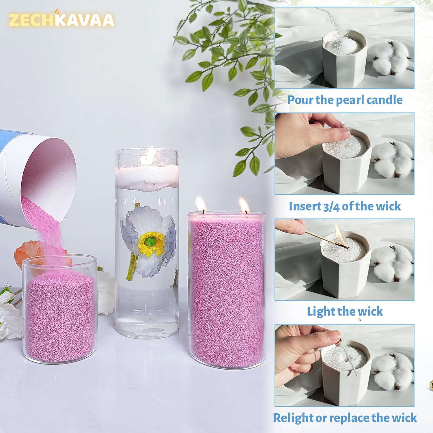 • 【Handmade Pearl Candles】Our refreshable candle sand powder provides a unique, reshapeable candle experience that lets your candles look brand new every time you light them. Just replace the wick to refresh your pearled candle.More flexible and decorative than other candles!