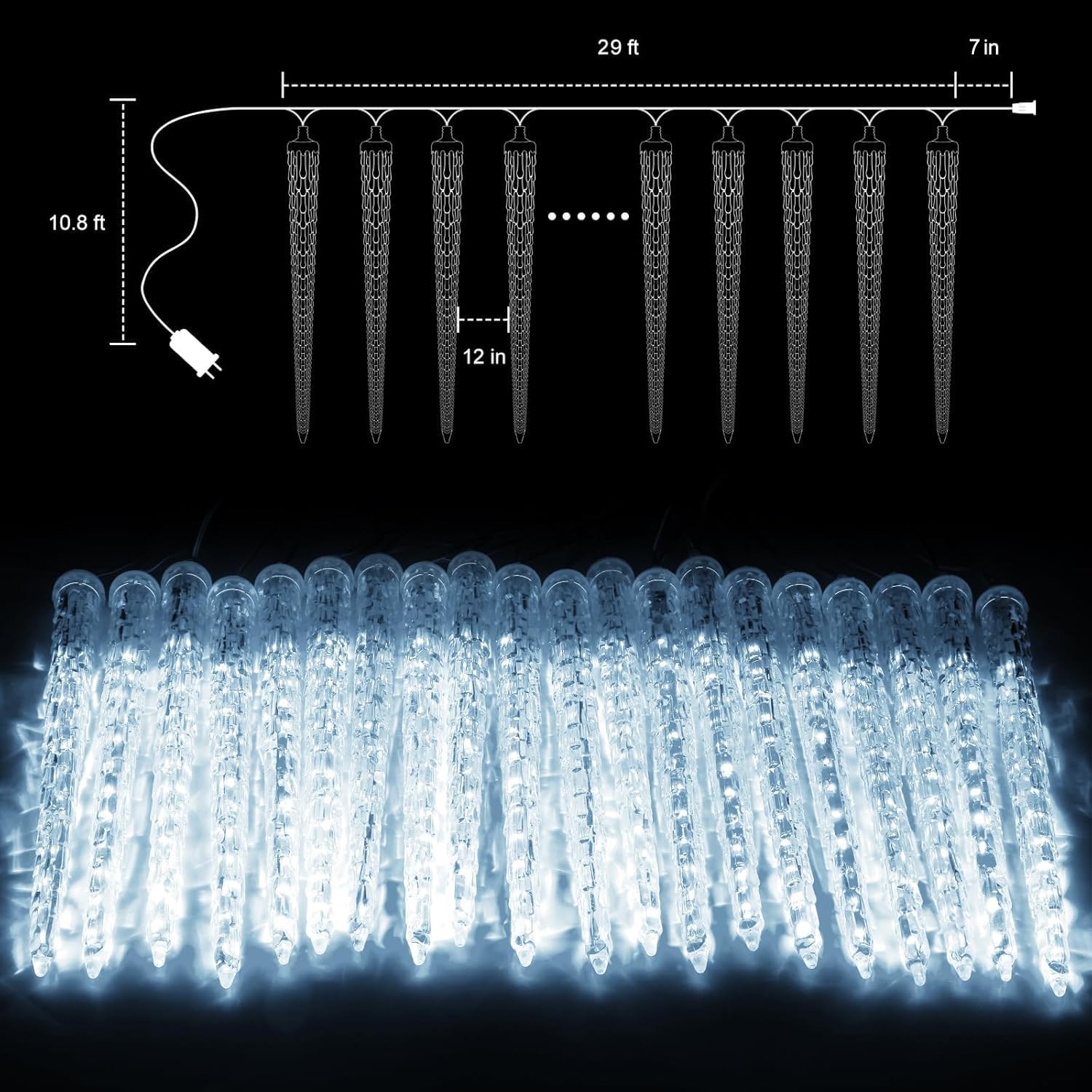 • 【Crystal Christmas Icicle Lights】Each Pack dazzle with 30 crystal icicle tubes featuring 720 warm white LEDs. The 11-inch icicles with a classic ice crystal design transform your yard into a magical winter wonderland;