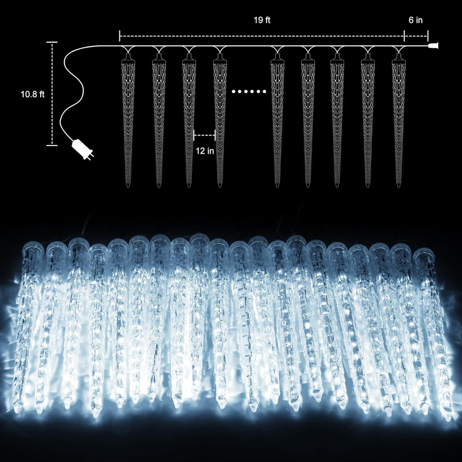 • 【2 Pack Crystal Christmas Icicle Lights】Each Pack dazzle with 20 crystal icicle tubes featuring 480 warm white LEDs. The 11-inch icicles with a classic ice crystal design transform your yard into a magical winter wonderland;