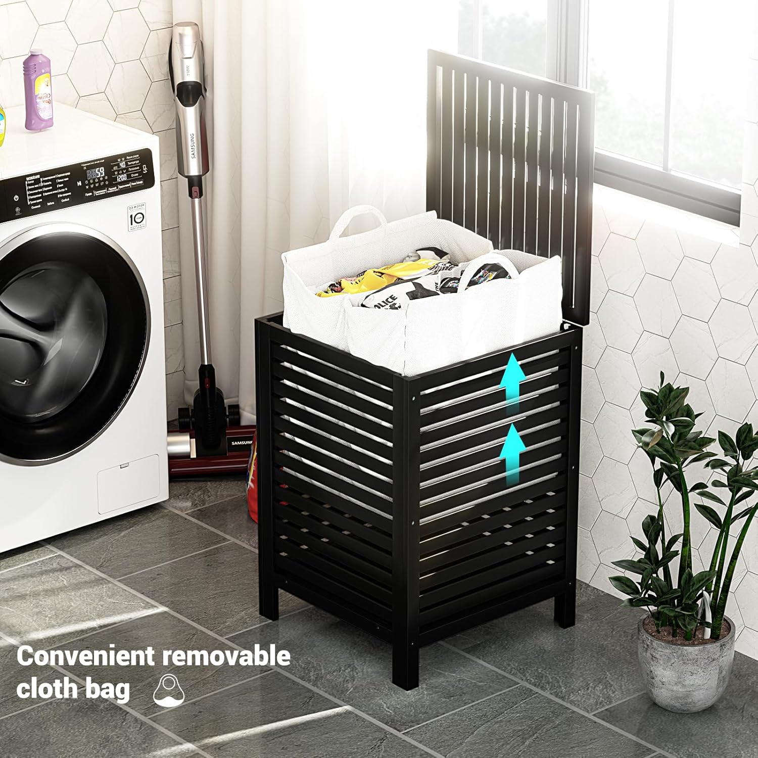 Homykic Bamboo Laundry Hamper with Lid, 120L Large Clothes Laundry Sorter with Removable 2-Section Liner Bag, Raised Laundry Basket Organizer for Clothing, Bathroom, Bedroom, Laundry Room, Black