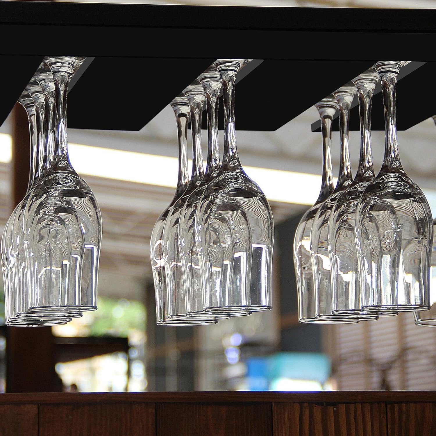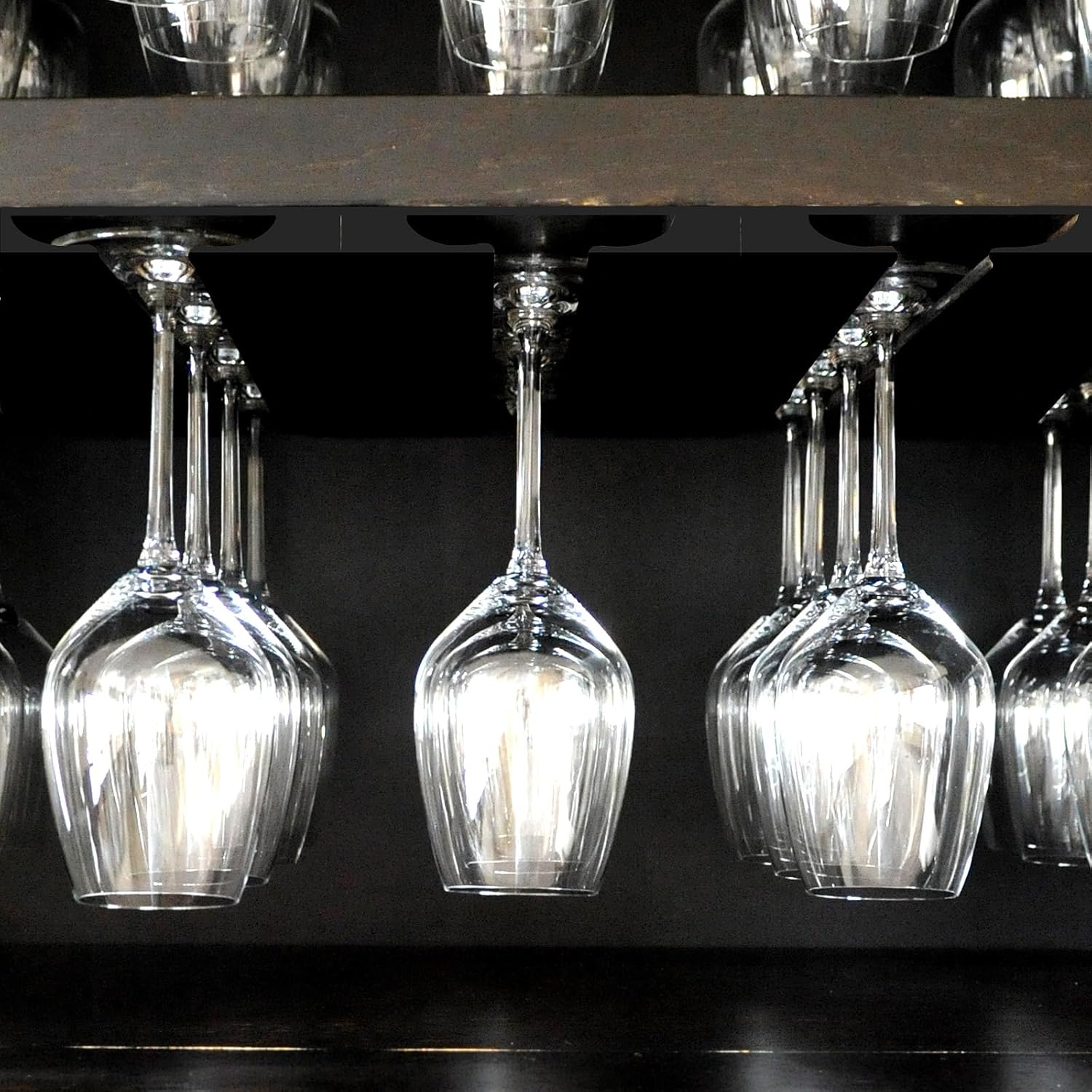 • Space-Saving Wall Mount Design - Easily install these elegant wine glass holders under cabinets or on walls to free up counter space while keeping your stemware organized and within reach