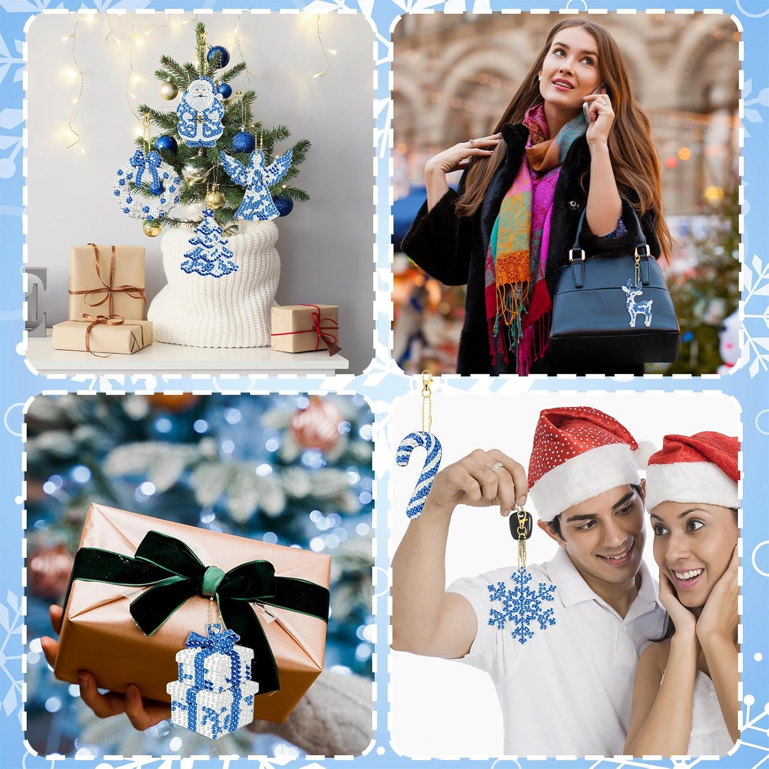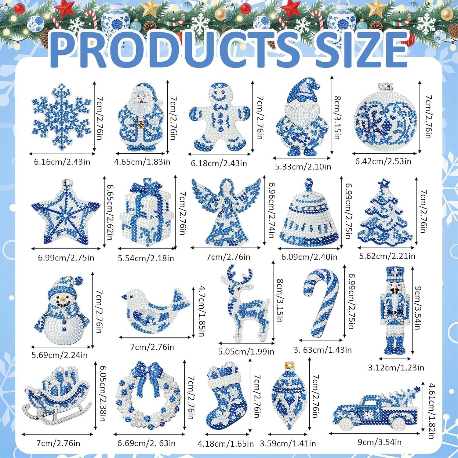 • Package Including: our package contains 20 Christmas blue and white porcelain diamond painting key chains with tools, which are suitable for those who like DIY; Plenty to use for multiple projects or share with friends and family for a fun Christmas break together