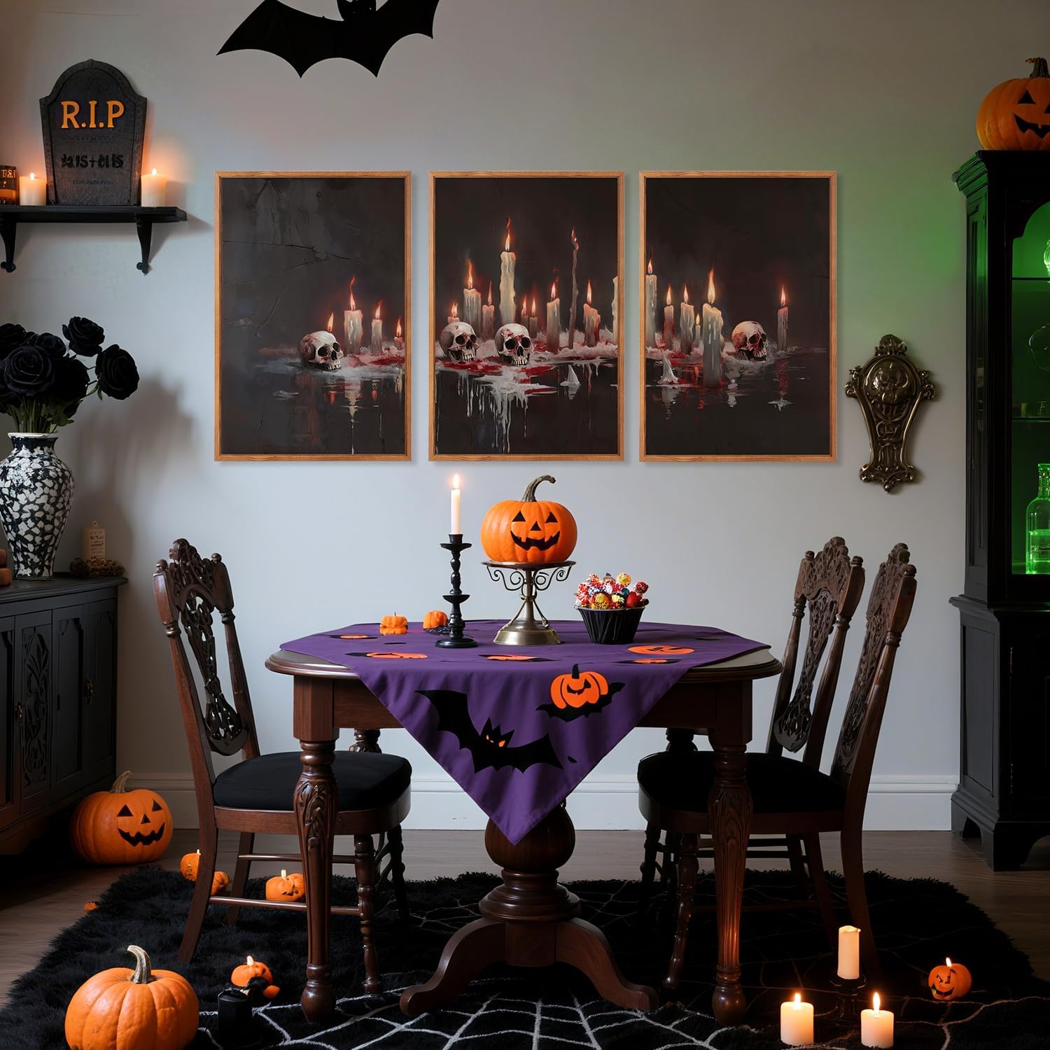 • Gothic Bloody Skull and Candles-- The details of Aurlan halloween wall art set of 3 are exquisitely processed, such as the melted wax on the candles, the reflections and bloodstains in the liquid. The overall image gives people a sense of horror, mystery, and religious rituals.