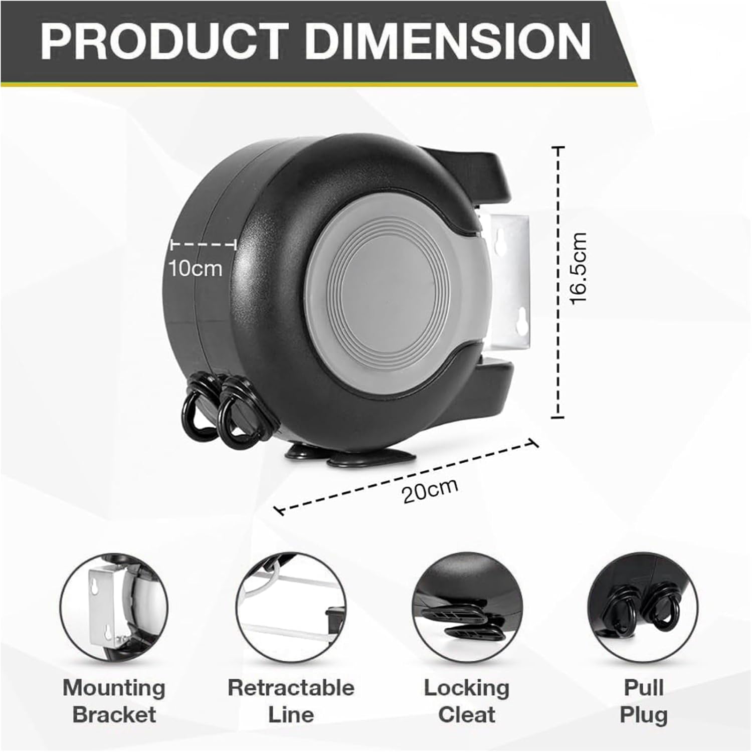 • Smooth Retraction & Easy Locking Mechanism – Pull the line to your desired length and secure it with the simple lock button. When done, release tension gently for smooth, tangle-free retraction. No jamming, no snapping—just easy operation every time.