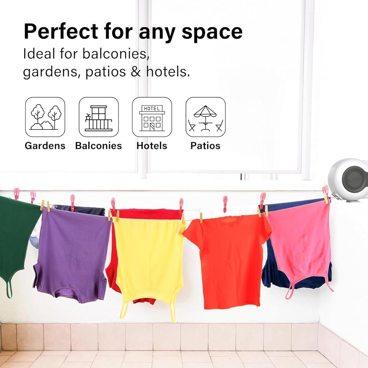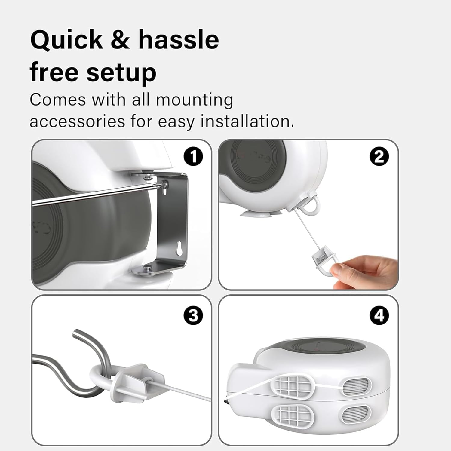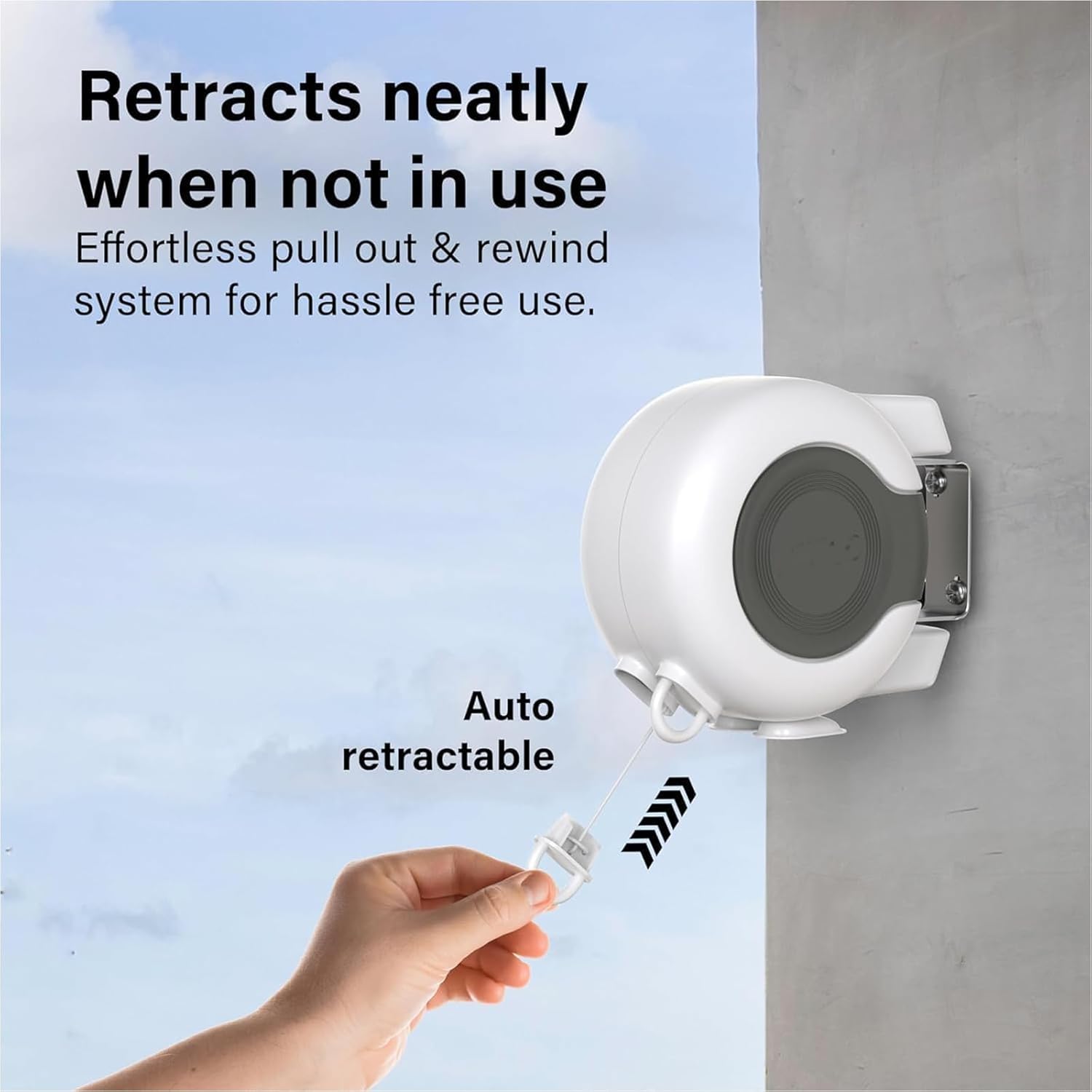 • Dual Retractable Lines for Maximum Drying Space – Enjoy nearly 100 feet of total hanging space with two retractable clotheslines, each measuring approximately 49 feet. Perfect for both indoor and outdoor use—laundry rooms, bathrooms, balconies, backyards, and more.
