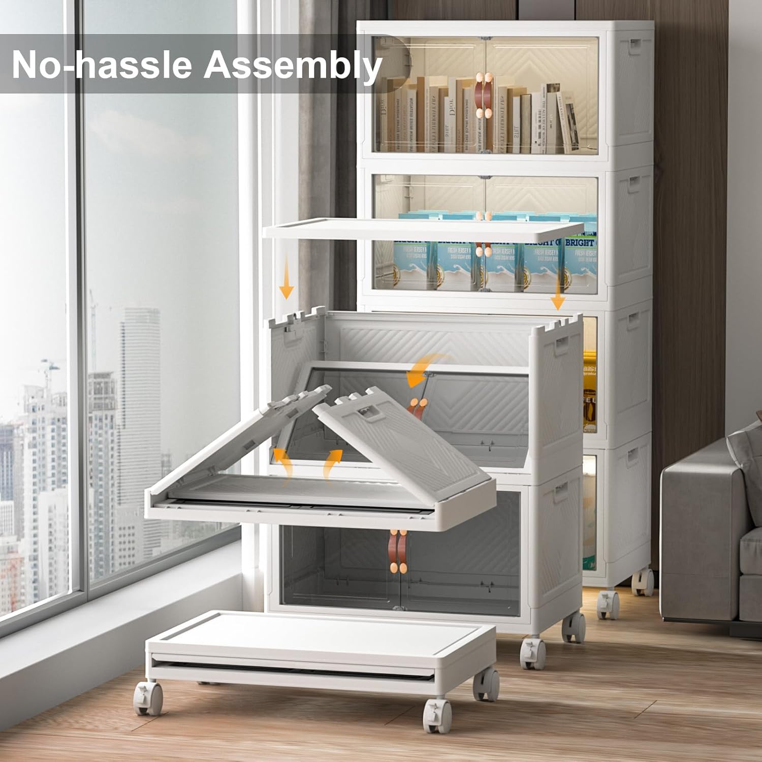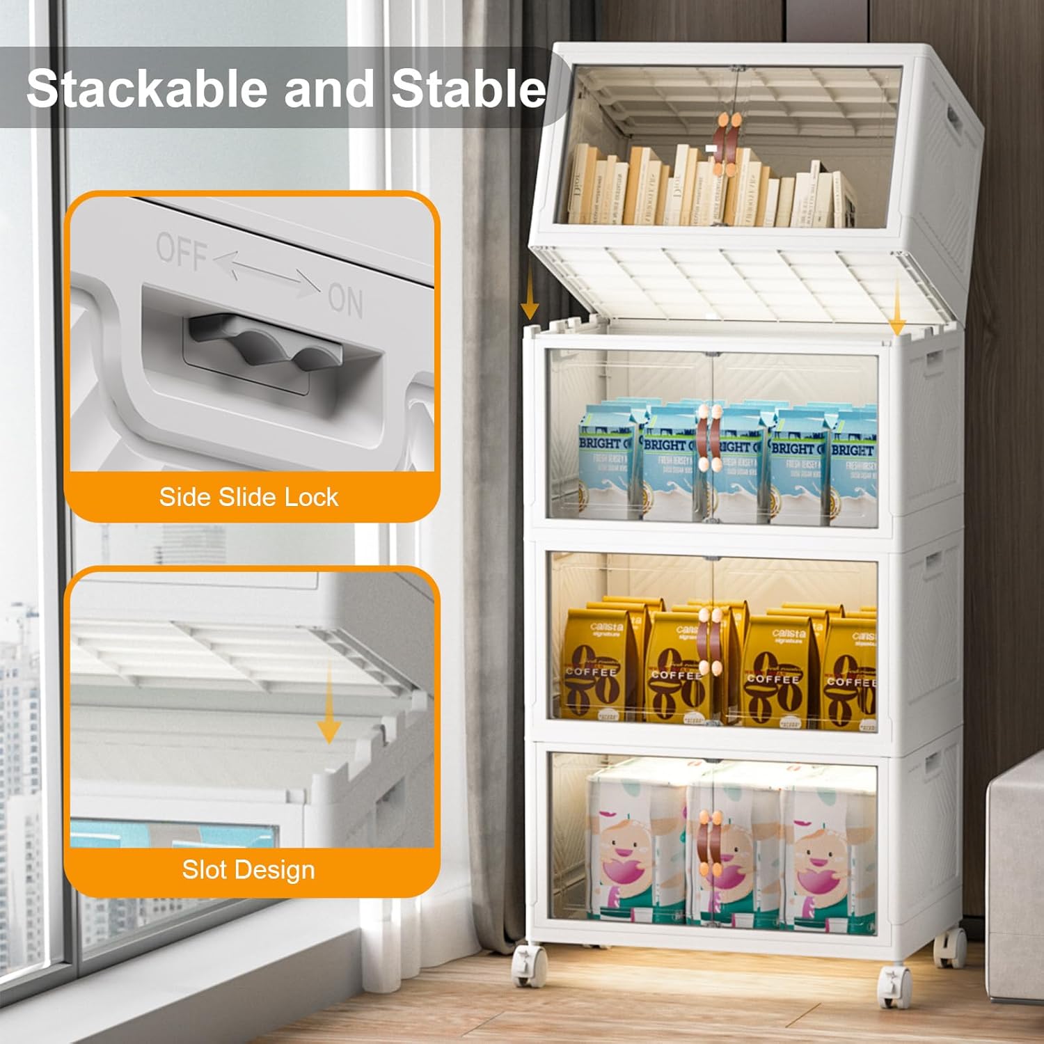 Extra Large Stackable Storage Bins with Lids & Wheels & Door, 896QT-112QT/28GAL*8Pack Foldable Collapsible Closet Organizers, Plastic containers drawers for bedroom Dorm