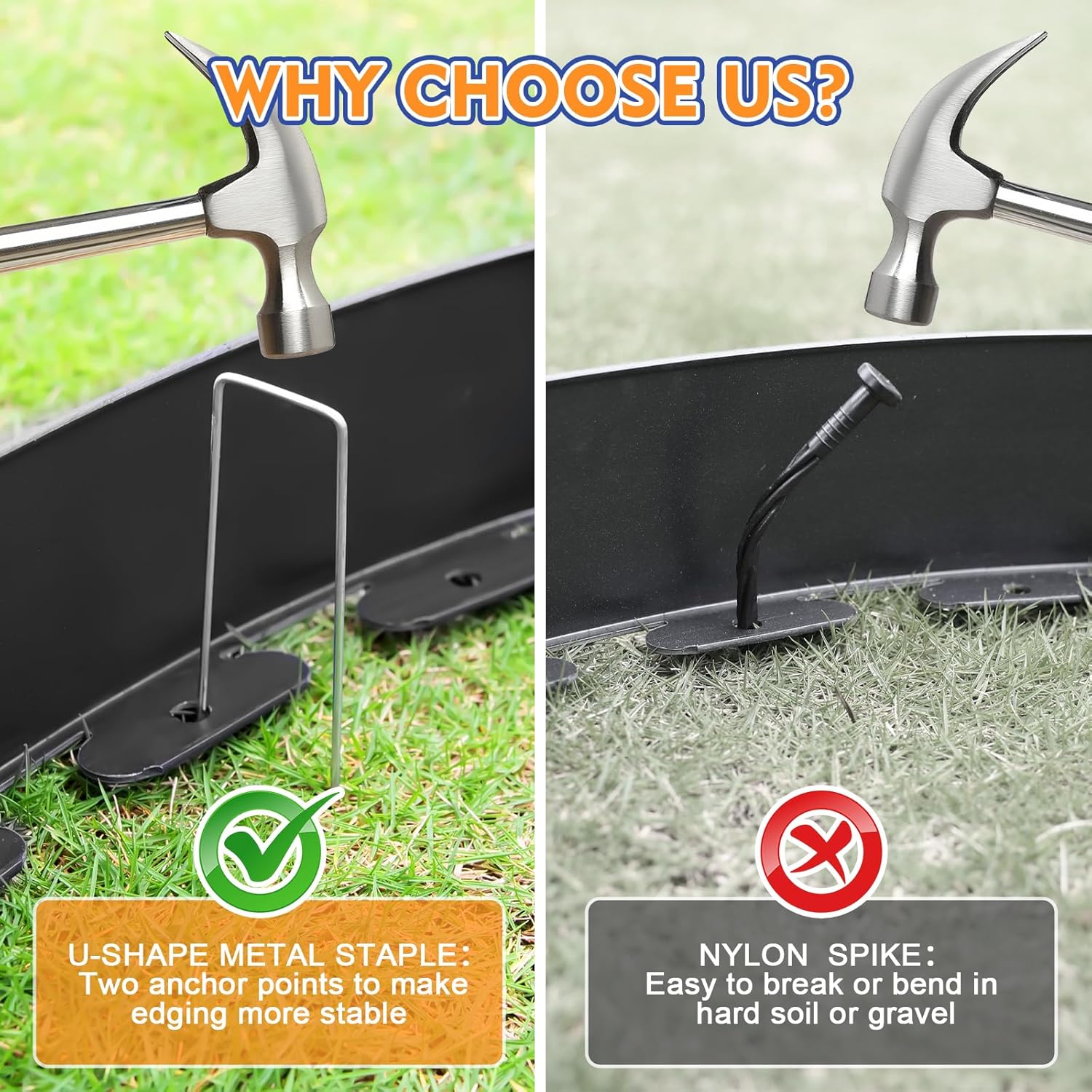 • 【Sturdy and Flexible】The landscape border kit is made of High quality plastic , Sturdy and flexible, capable of carrying out the required design in your landscape courtyard. Our metal nails adopt a U-shaped design, which is more powerful than traditional plastic nails