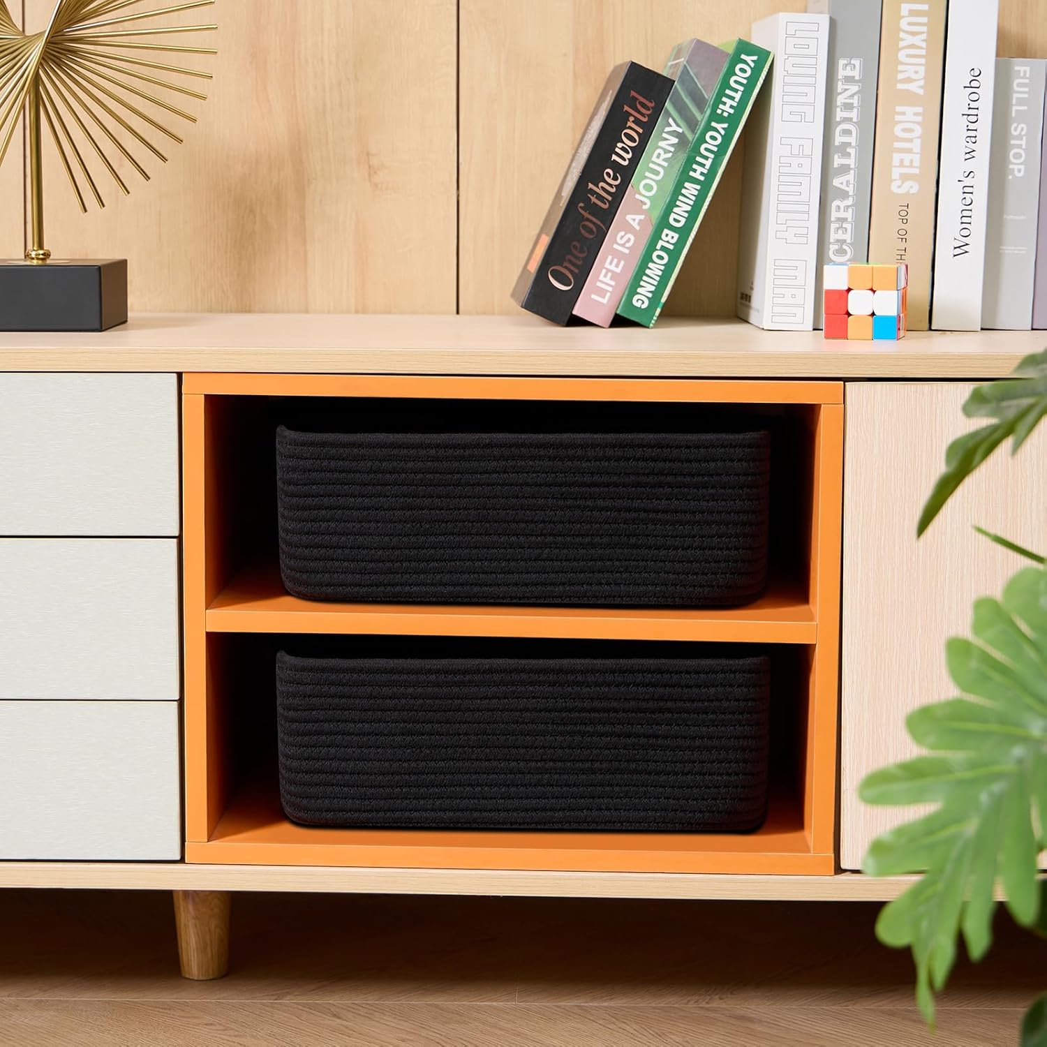 • [ Stylish & Versatile ]:‌ Great for organizing small items on desks, in closets, wardrobes, or dressers—‌these cute baskets‌ add texture to any living room, bedroom, or bathroom, appealing to fans of modern minimalist design