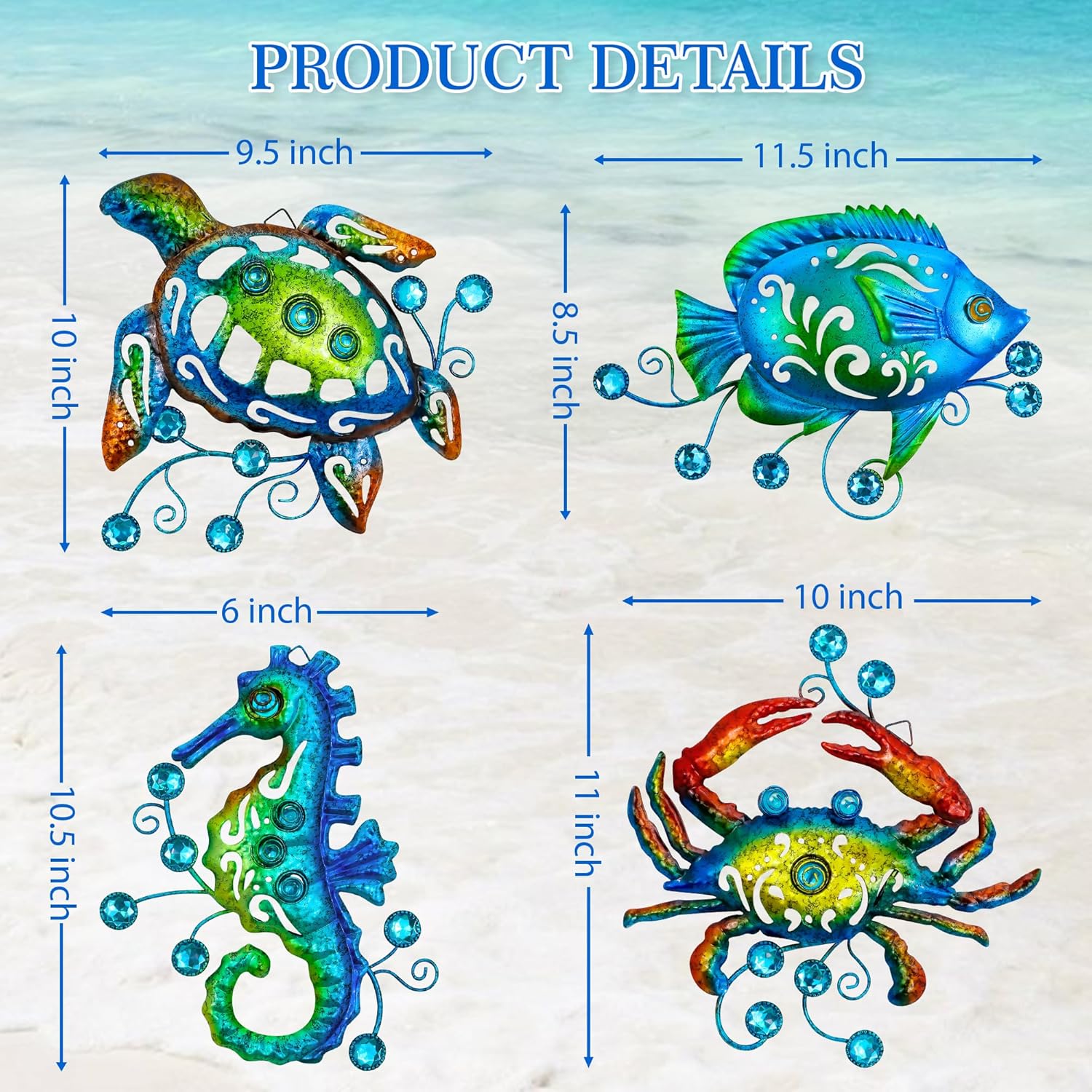 • [Ocean Theme Decor]:Elevate coastal decor that this hand-forged beach decor set featuring a sea turtle, fish, crab, and seahorse. In folklore, the ocean is regarded as good luck which can bring good luck to families.