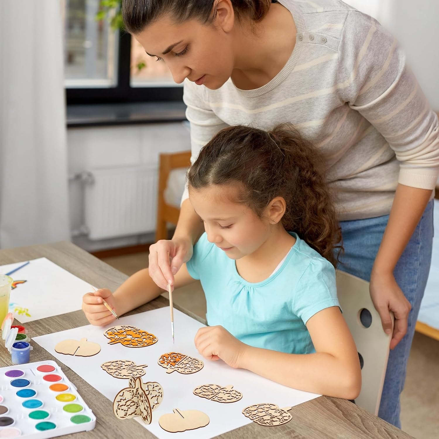 COCHIE DIY 3D Fall Pumpkin Wood Crafts to Paint for Kids Adults, Paintable Unfinished Wooden Slices for Craft, Cutouts Ornaments for Painting Decorations (24 PCS)