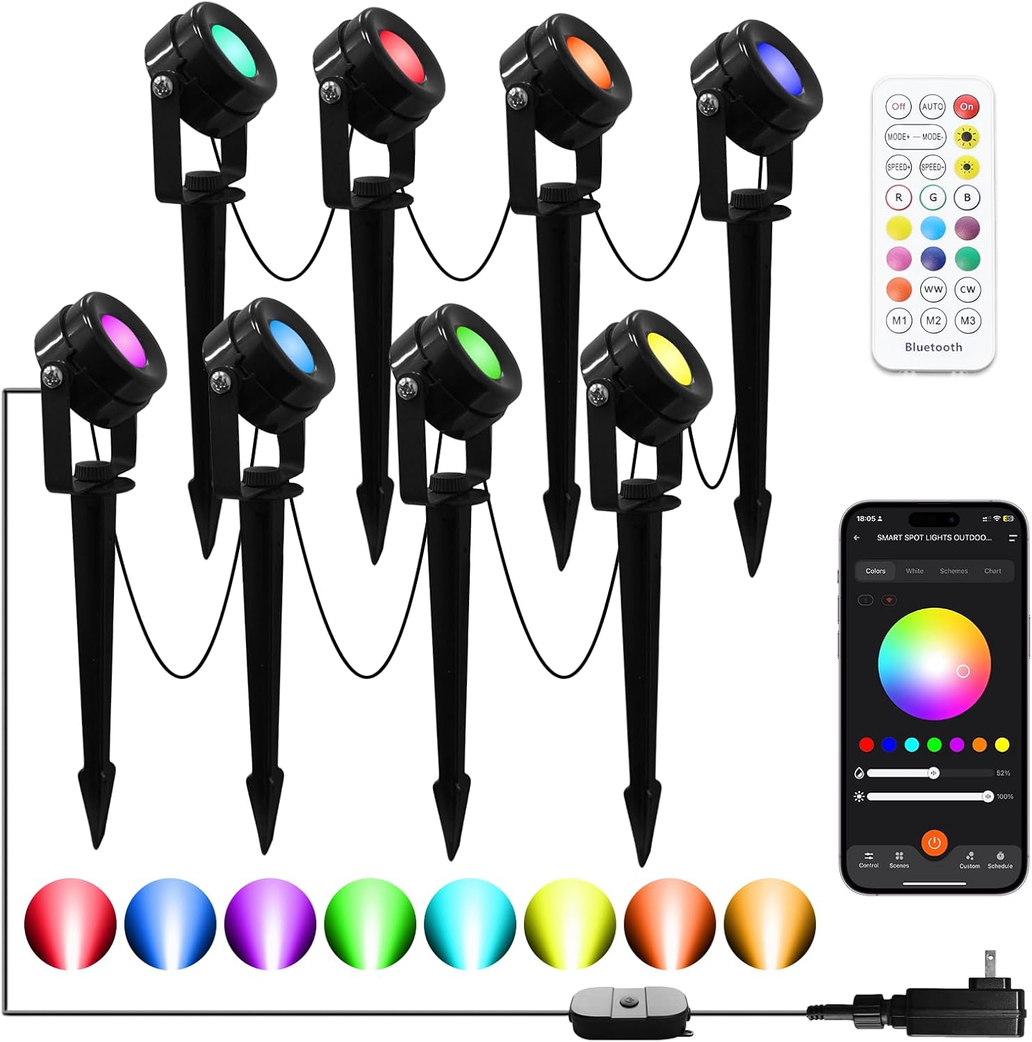 • 【APP & Remote Control Smart Control】Turn on WIFI & Bluetooth and app to complete pairing. With the "Smart VTimes" app and remote and control box to control landscape lighting, experience versatile control with various options. You can choosing from 16 million colors, adjusting brightness from 1%-100%.The landscape spotlights is perfect for yard, patio, garden, fence or holiday decorations like Christmas and Halloween.(Only 2.4G WiFi)