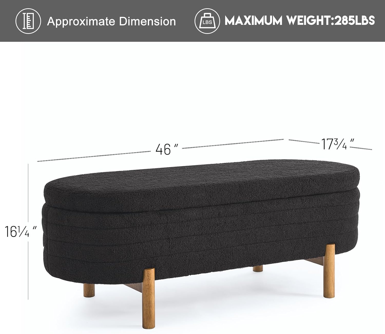 • ·Large Storage Space:This bedroom storage bench offers ample room to store blankets, toys, clothes, books, and more. The bench for end of bed helps you to keep everything organized. The four durable legs are crafted from selected solid wood for long-lasting use. The elegant black coating not only stabilizes the ottoman for bedroom but also safeguards the floor from scratches.