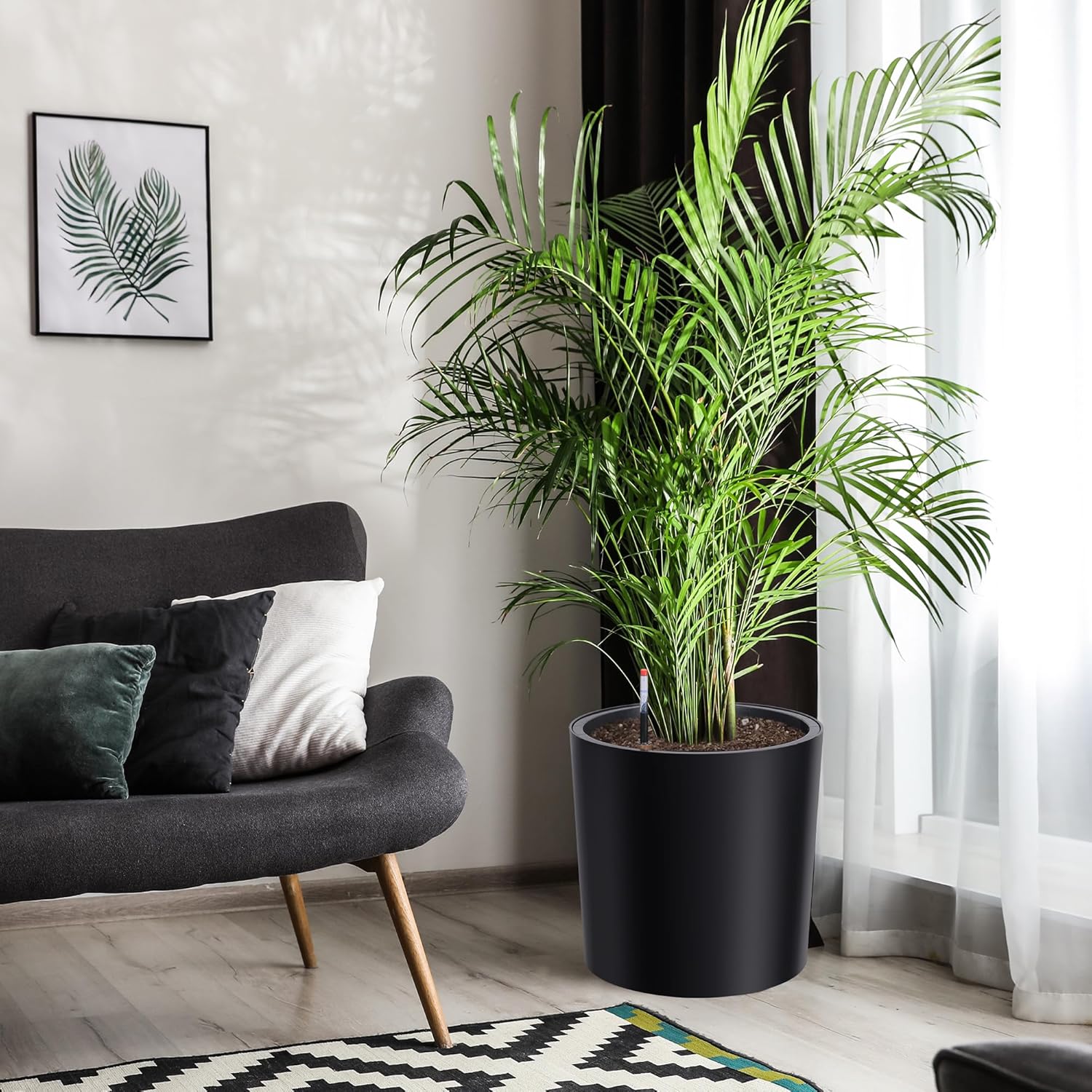 Tall Round Planter Set of 2, 20" Large Planter Pots with Built-in Drainage and a Water Level Monitor and Wheels for Patio, Porch, Living Room, or Home Office