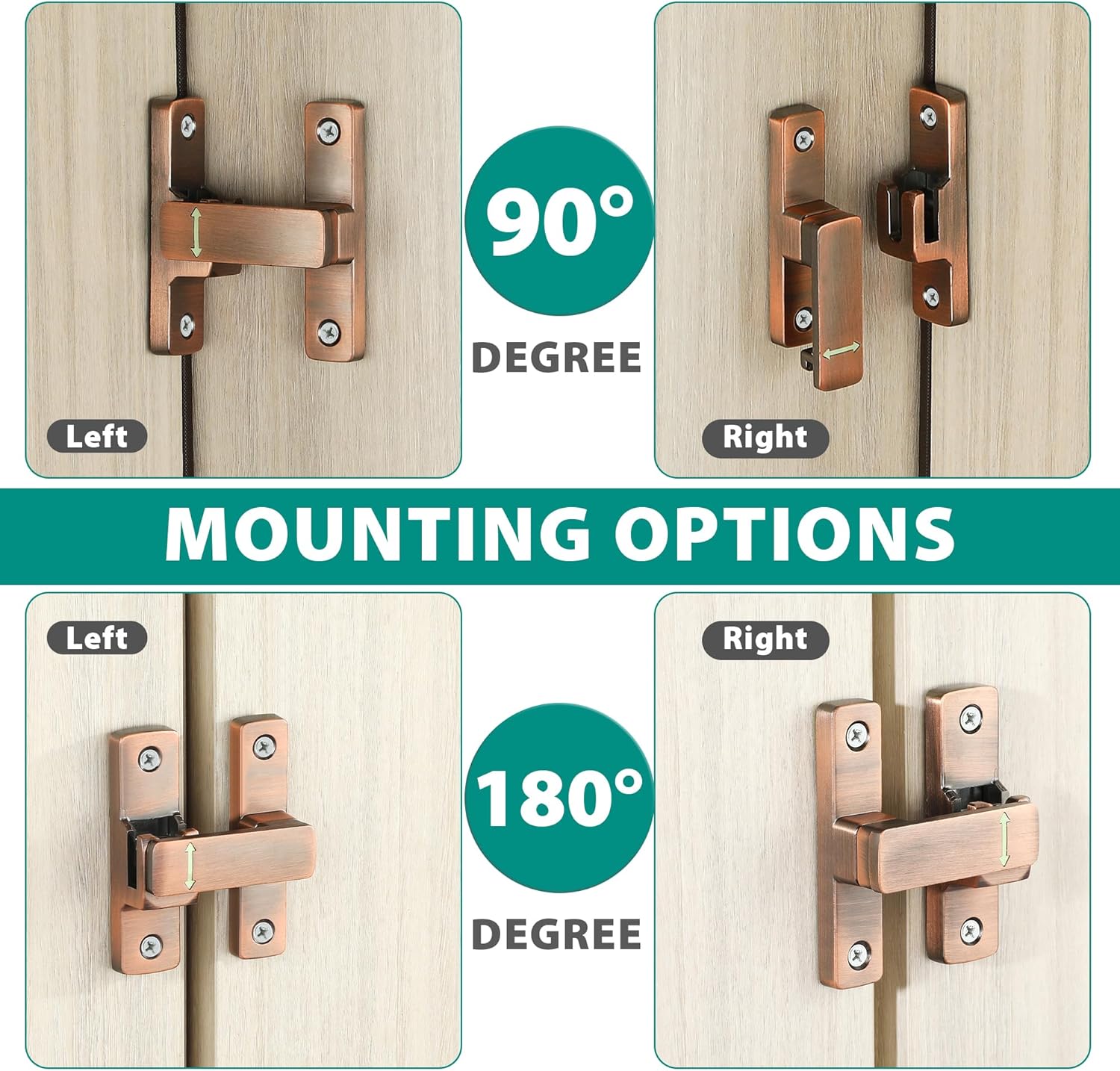 • UPGRADED GATE LATCH: This door lock can be mounted at 180 degree, also can be mounted at 90° right angles, providing space-saving functionality.