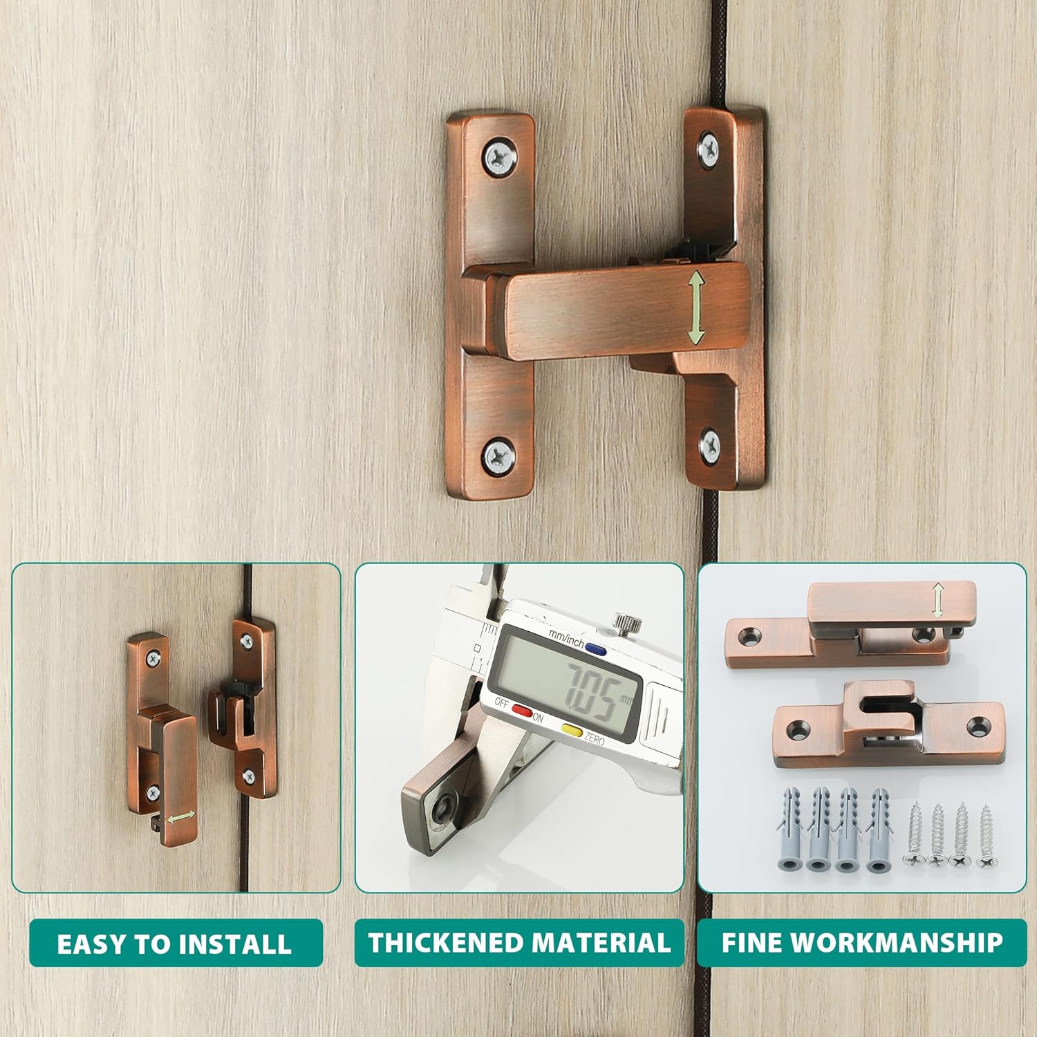 • STRONGER MATERIAL: The gate latch is made of high quality zinc alloy material, coated with multi-layer coating covering the surface, ensure the product waterproof, rustproof, strong and durable.