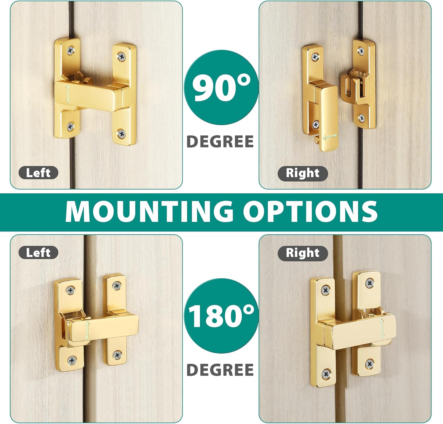 • UPGRADED GATE LATCH: This door lock can be mounted at 180 degree, also can be mounted at 90° right angles, providing space-saving functionality.
