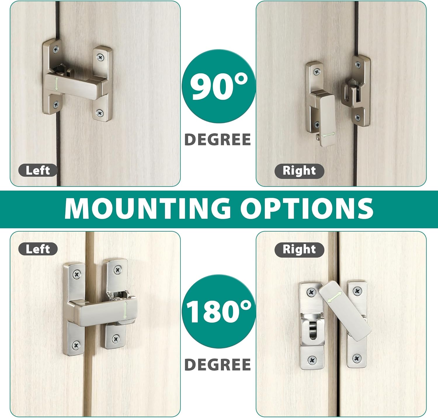 • UPGRADED GATE LATCH: This door lock can be mounted at 180 degree, also can be mounted at 90° right angles, providing space-saving functionality