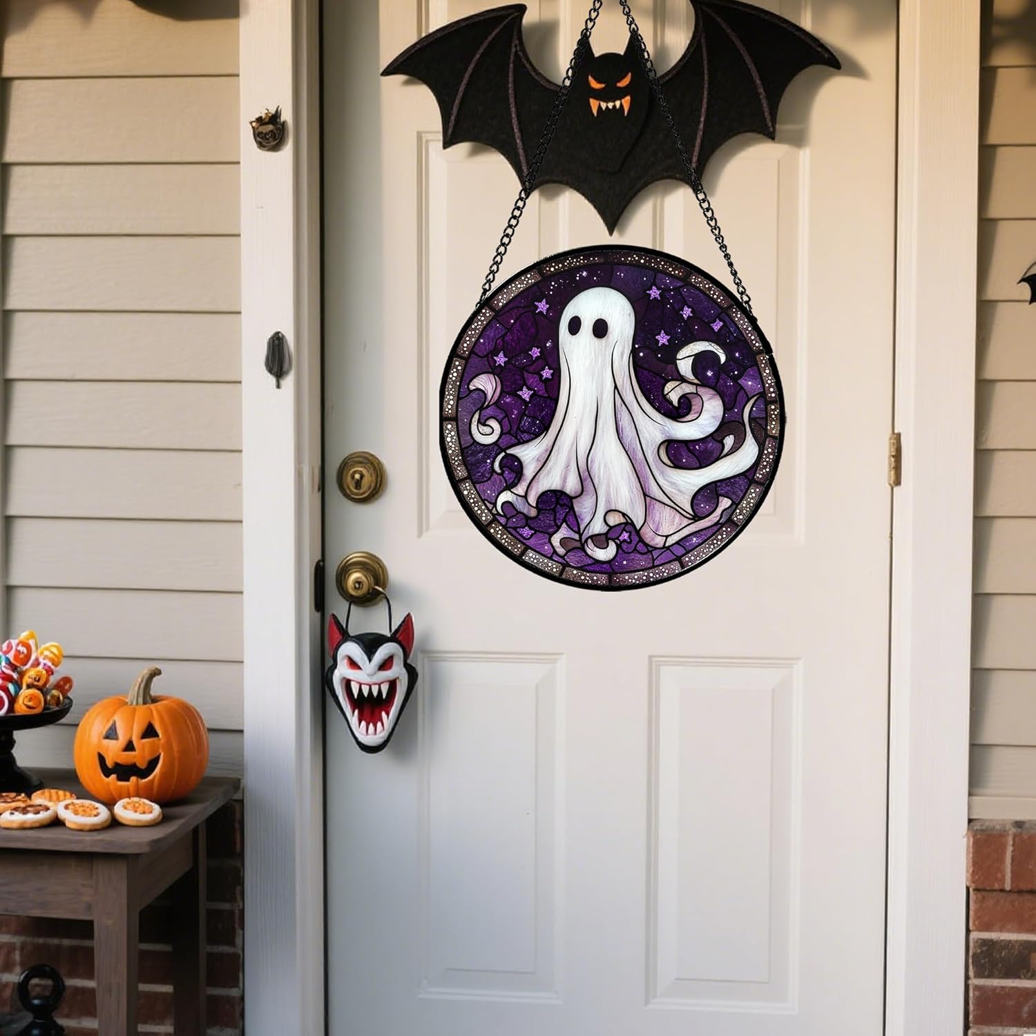 • Easy to Hang & Display: Comes with a sturdy hanging chain. You can effortlessly hang it on any window, door, or wall. No complex installation needed, allowing you to quickly decorate your home for Halloween parties or daily festive vibes.