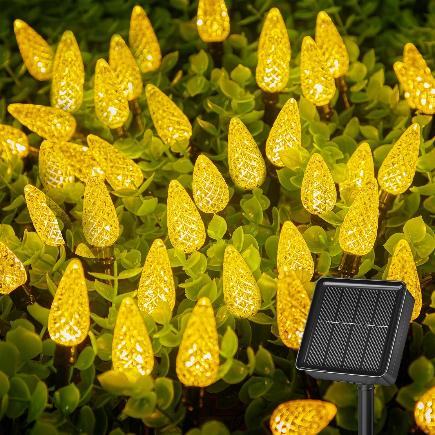 Brightown Solar Operated C6 Strawberry String Lights, 22.64ft 50 LEDs Warm White LED Christmas Fairy Lights, Solar Christmas Lights Outdoor, Christmas Decorations for Christmas Tree, Garden Decor