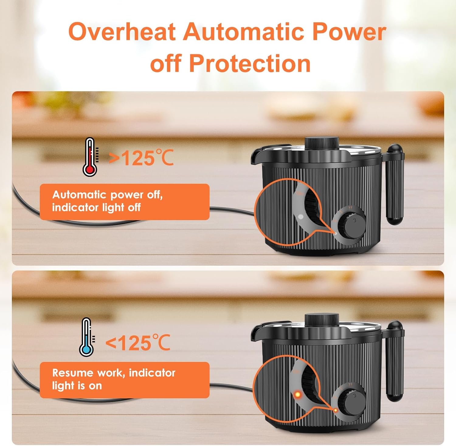 • Intelligent power-off protection system: The Venpow wax melter for candle making will automatically shut down when the temperature exceeds 125°C, and automatically restart when the temperature drops back to the safe range, preventing safety hazards caused by continuous heating of the wax melter for candle making.
