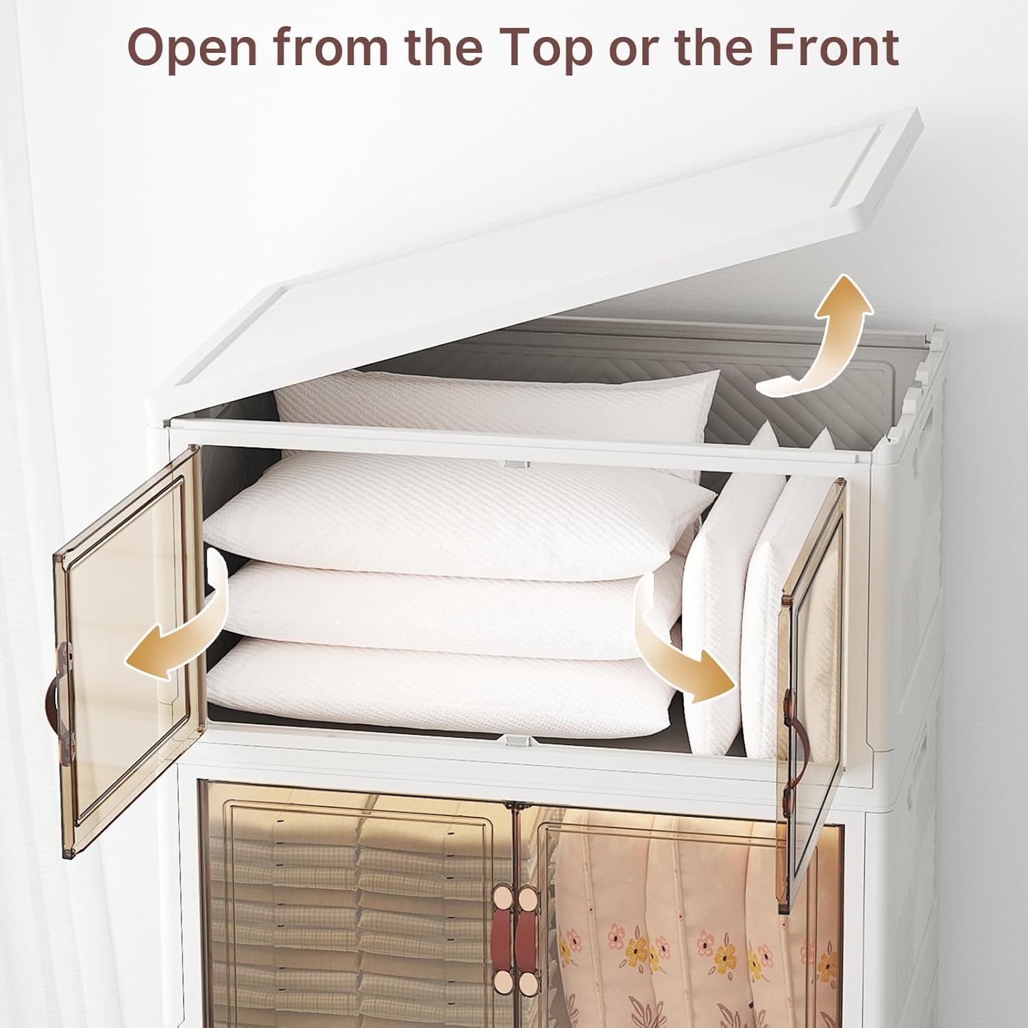• 【Ultra-Large 660QT Capacity 】: Say goodbye to clutter with these stackable storage bins! This 4-tier extra large stackable storage bins system offers a massive 660QT capacity — 165QT per layer — perfect for storing bulky comforters, pillows, seasonal clothes, and more. Create a neat, organized home with ease.