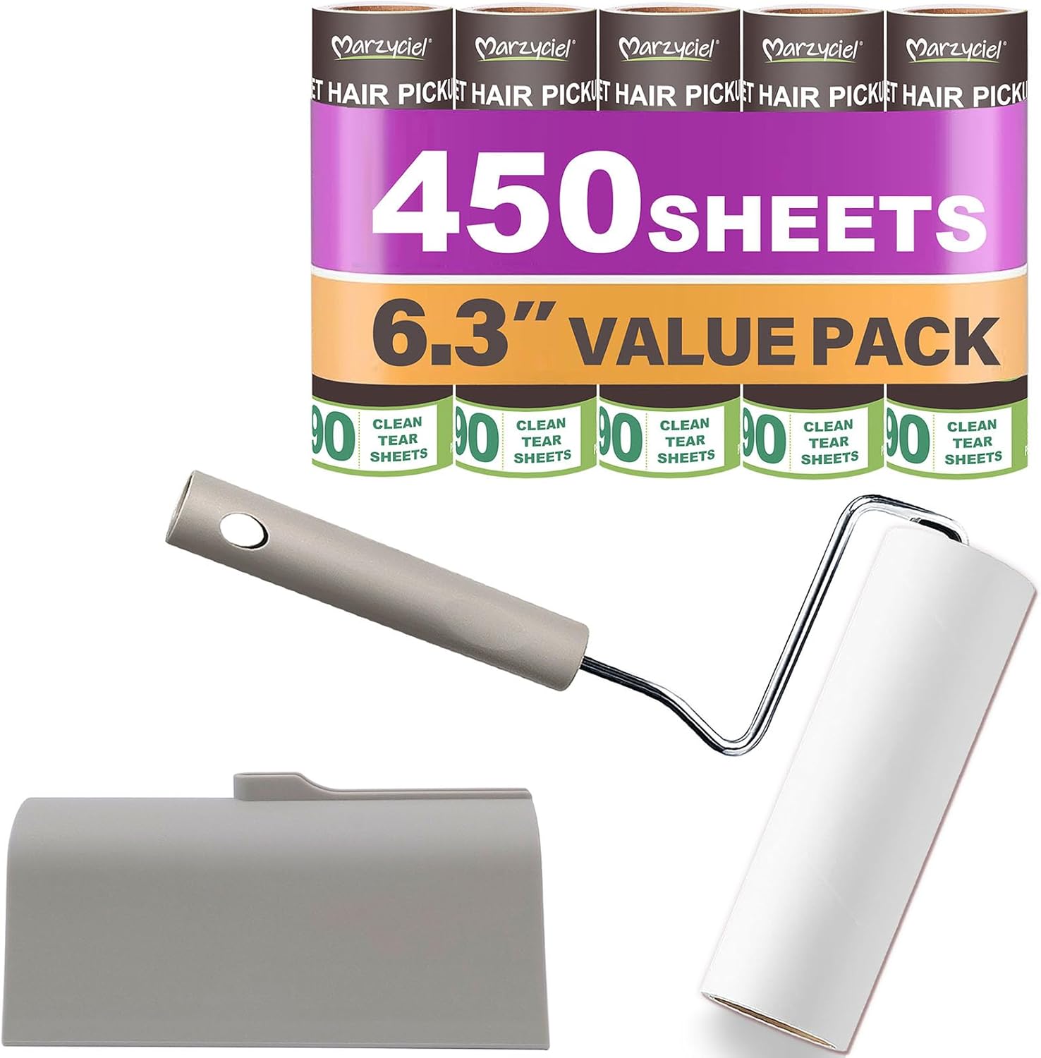 Extra Sticky Large Surface Lint Roller, 6.3'' Giant Lint Roller for Pet Hair, 450 Sheets/ 5 Refills, Long Handle Lint Remover for Clothes, Furniture, Dog & Cat Hair Remover