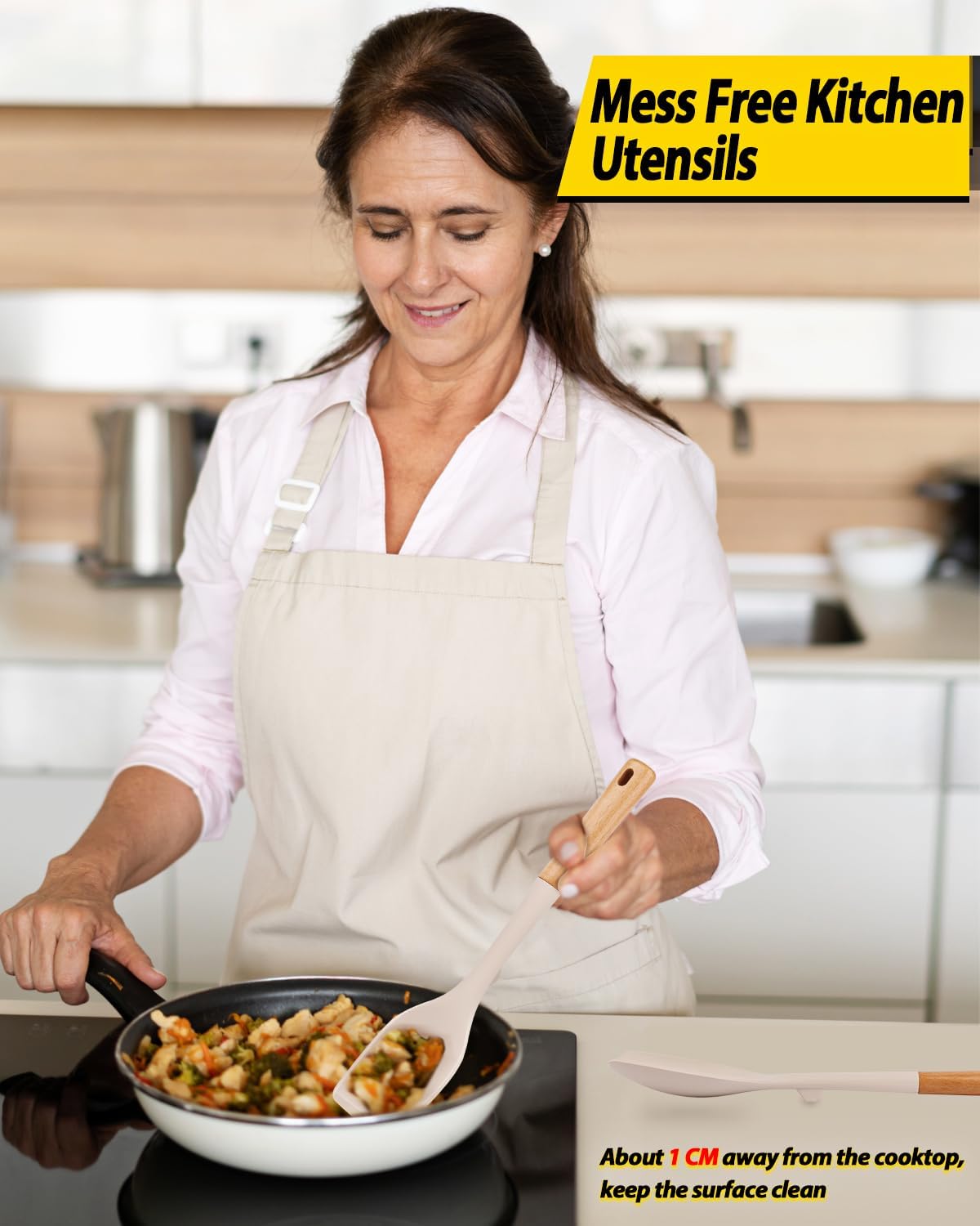• Thoughtful Design: The little bulge design prevents the silicone head from touching the cooktop after cooking, effectively keeping the surface clean;Wooden handle keeps you away from the trouble of cooking utensils rusting or breaking