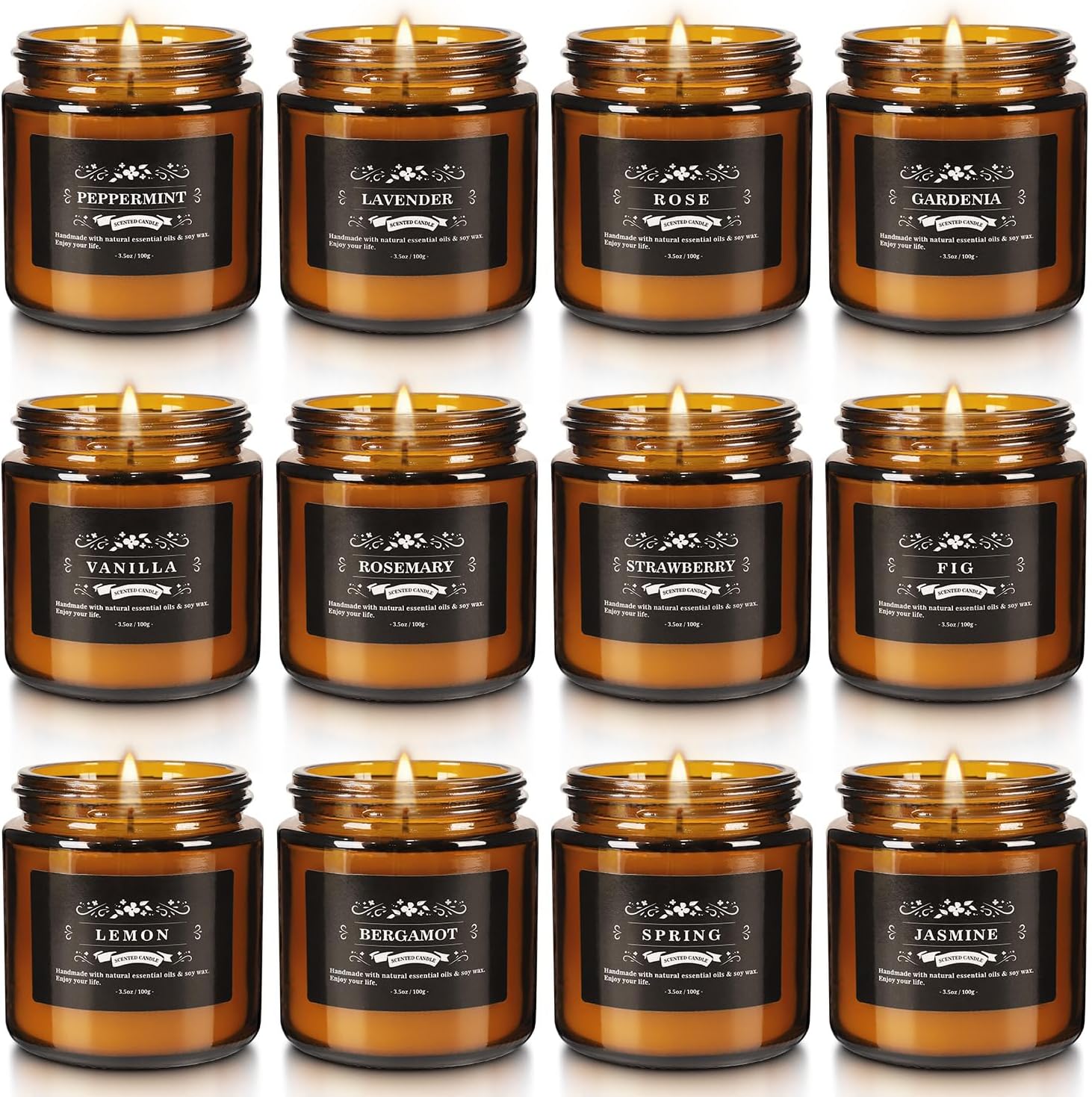 Scented Candle Set 12 Pack, Candle for Home Scented, Odor Eliminating, Stress Relief, Long Lasting Soy Wax Gift Set