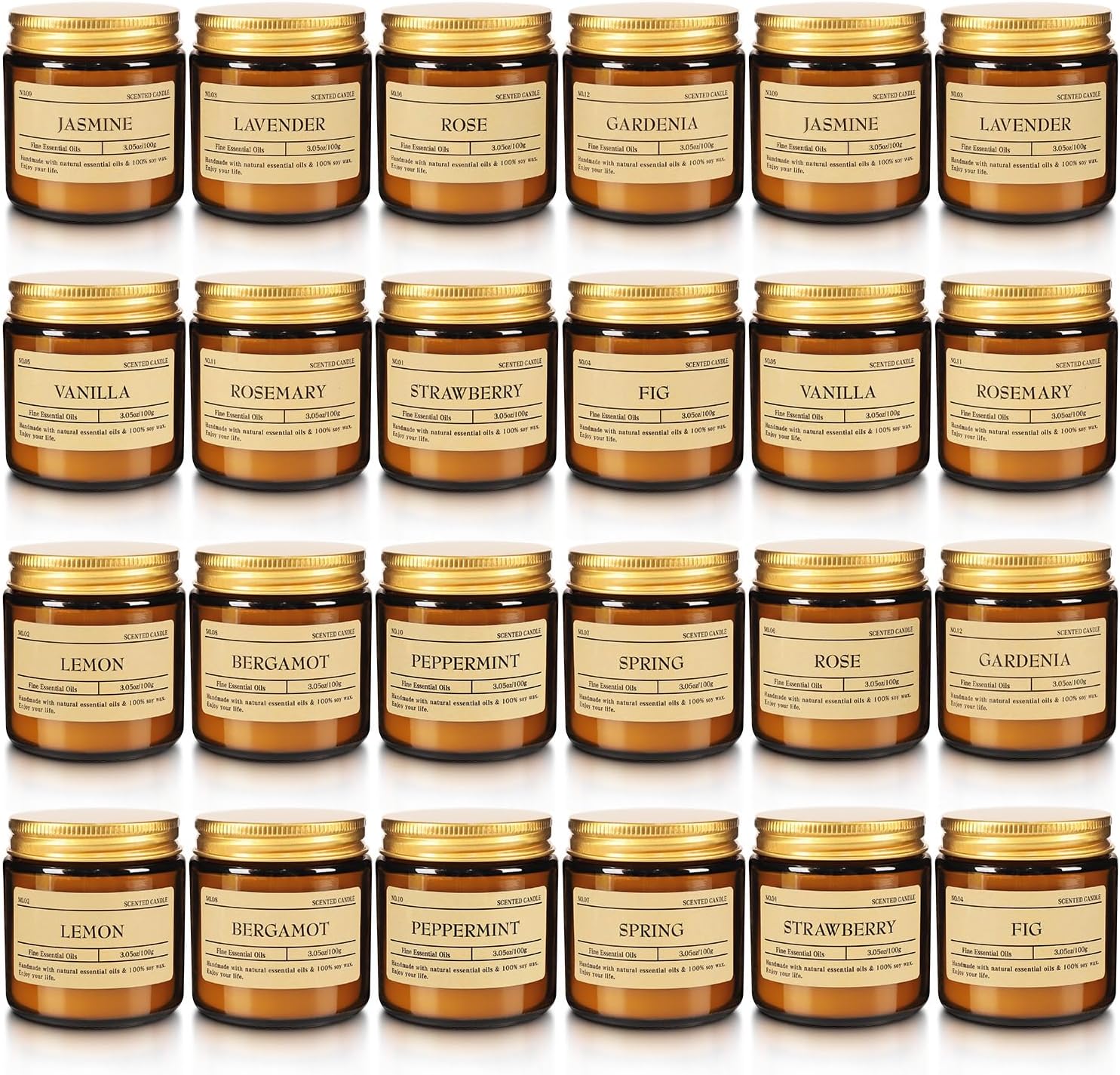 Scented Candle Set 24 Pack, Candle for Home Scented, Odor Eliminating, Stress Relief, Long Lasting Soy Wax Gift Set