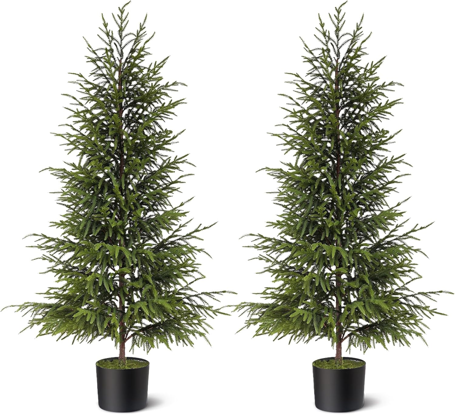 • Quantity and Size : Package includes 2 artificial norfolk pine tree,norfolk pine tree is 4 feet in length with black pot (6" Diameter*5" Height).