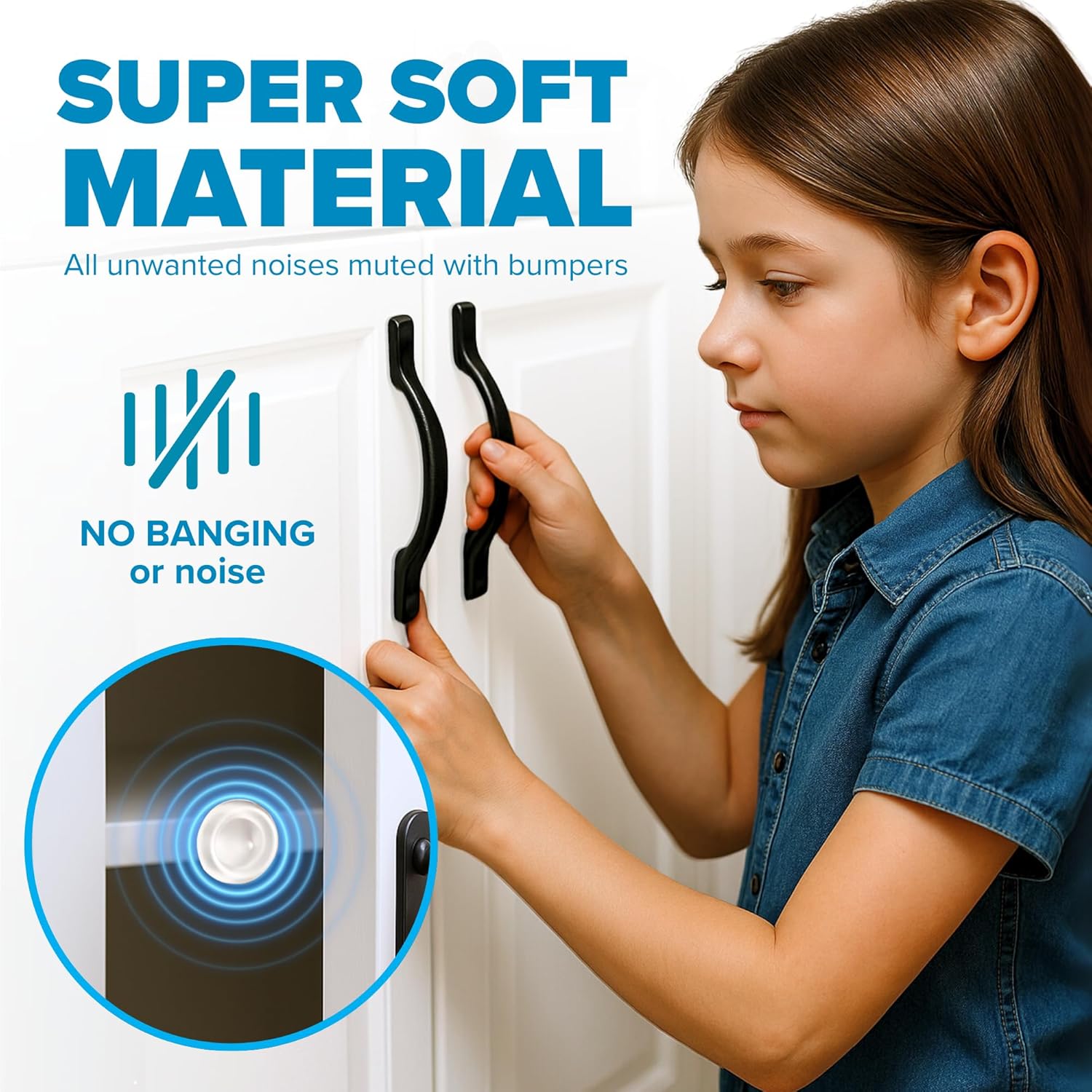 • Strong Self-Adhesive – Featuring an ultra-sticky backing, these white cabinet bumpers are easy to apply and stay firmly in place on kitchen cabinets, drawers, and furniture surfaces. The white adhesive bumper pads won’t slide or wear off, offering reliable protection.