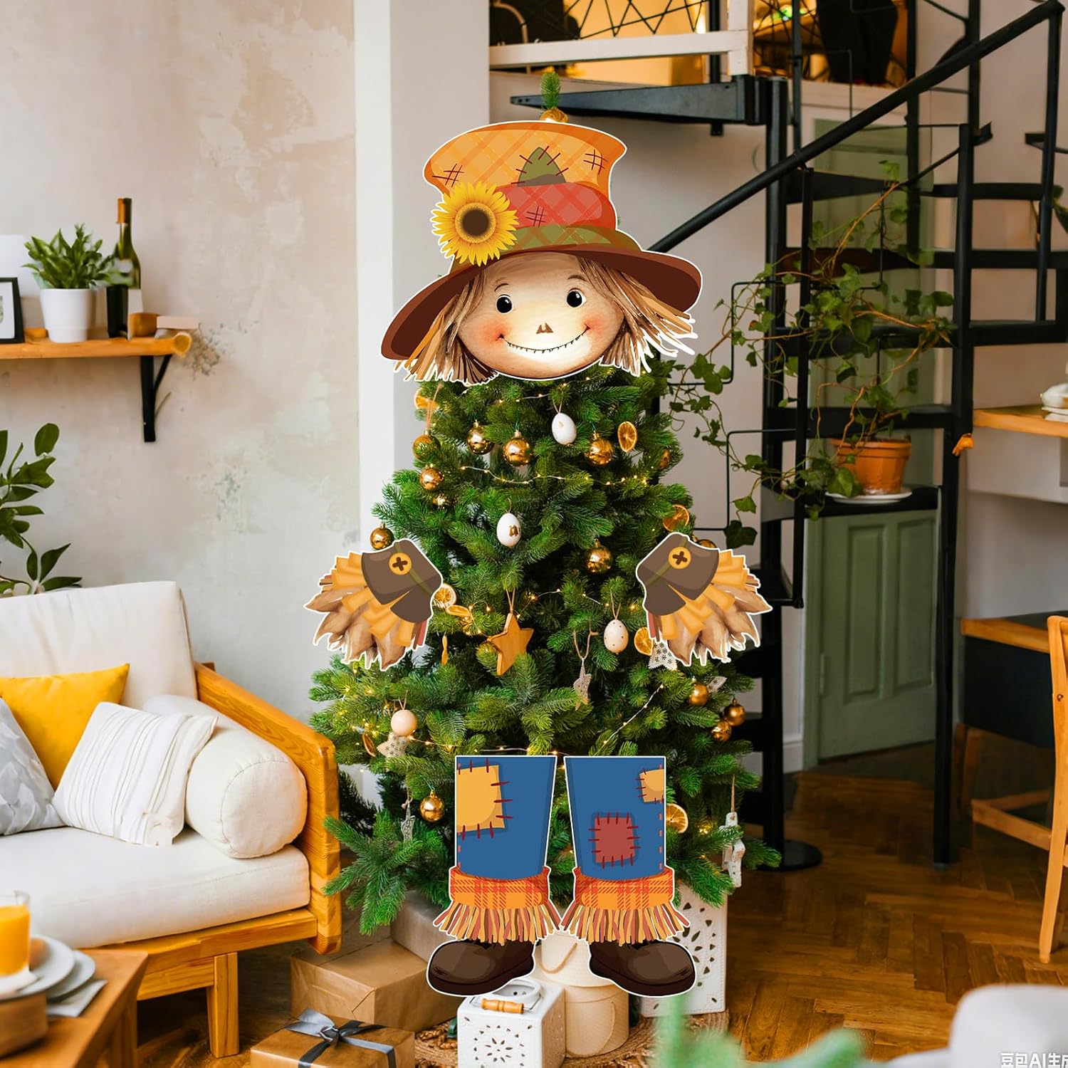 Scarecrow Fall Tree Topper Autumn Harvest Farmhouse Decorative Tree Treetops Head Hands and Legs Decor for Holiday Fall Thanksgiving Indoor Home Decorations Party Supplies