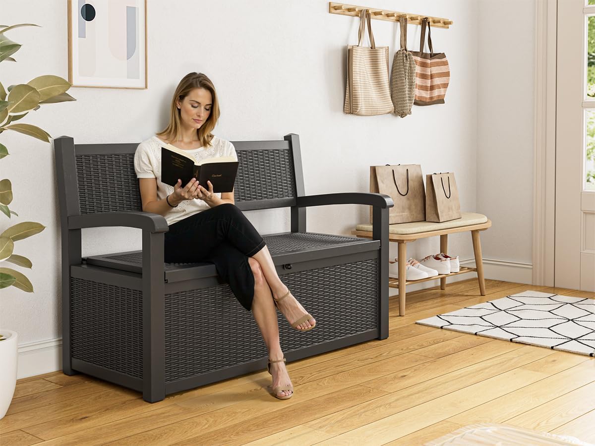 • All-Weather Protection: Crafted from weather-resistant resin, this outdoor bench with withstands sun exposure, moisture, and temperature changes while maintaining its structural integrity season after season, this porch storage stands tough for long-lasting protection.