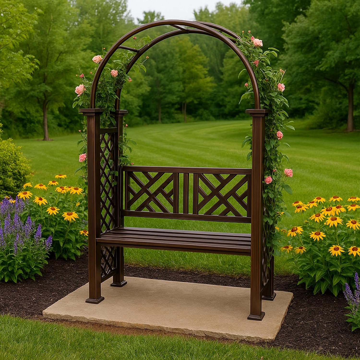 Bronze Aluminum Garden Arbor Arch with 2-Seater Bench
