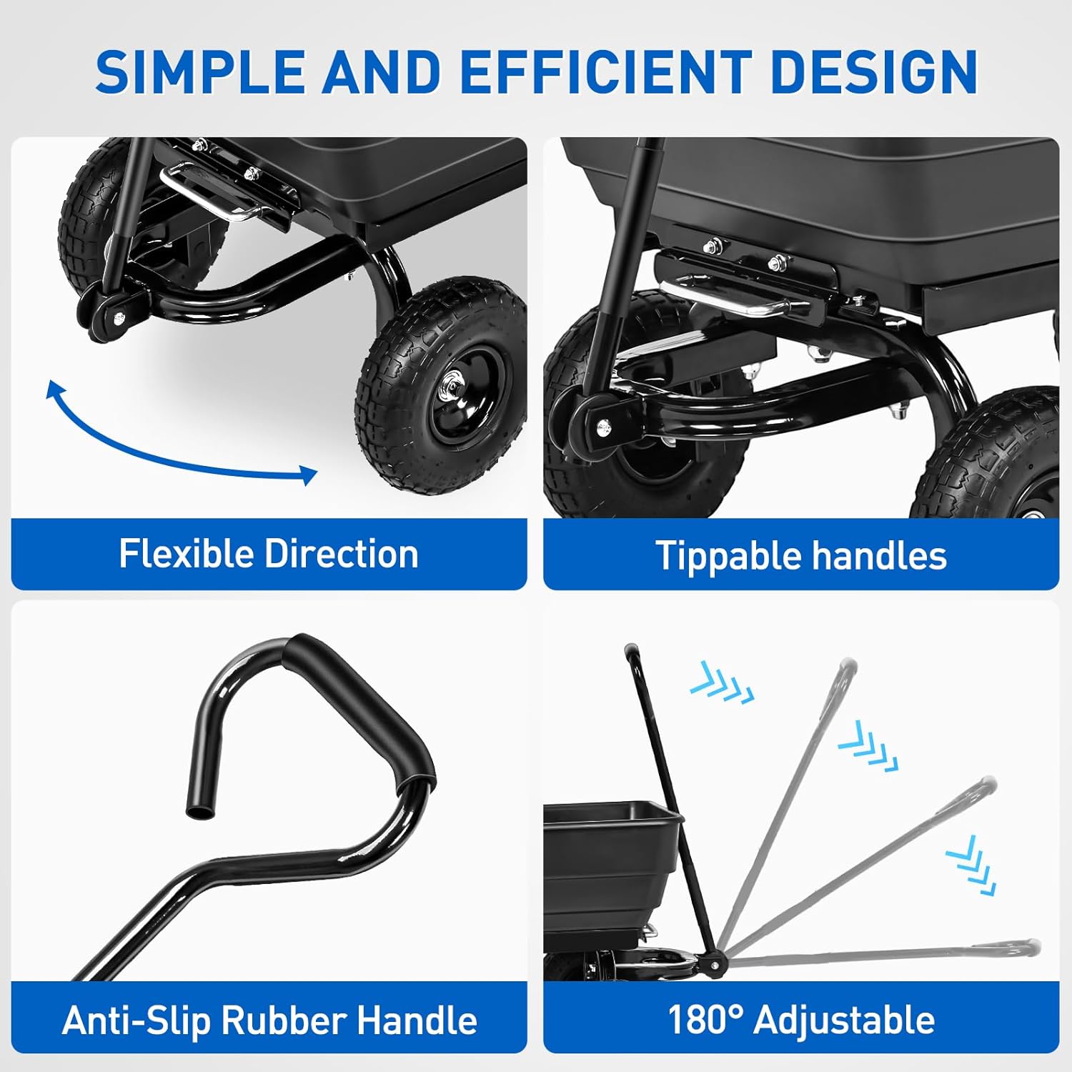Yesker Garden Carts - 900lbs Dump Wagon with All Terrain Inflatable Wheels for Yard Lawn Farms Gardening - Heavy Duty Utility Outdoor Hauling Wheelbarrow