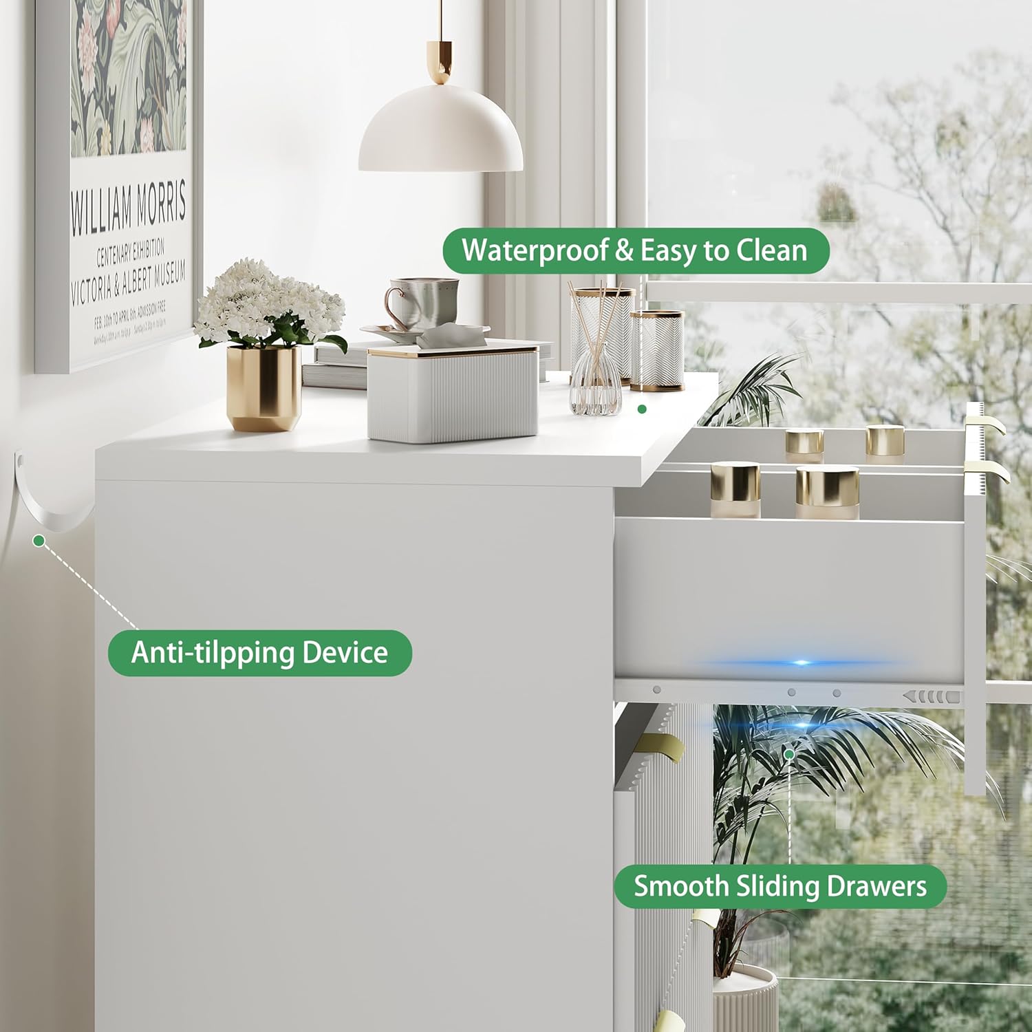 • 【Modern Chic Appearance】The unique wave-like fluted panel enhances the texture and elegance of this bedroom dresser. The thick table top features natural wood grain that complements the white finish. The wide metal handle and splayed base legs add a modern touch, creating a personalized and distinctive appearance