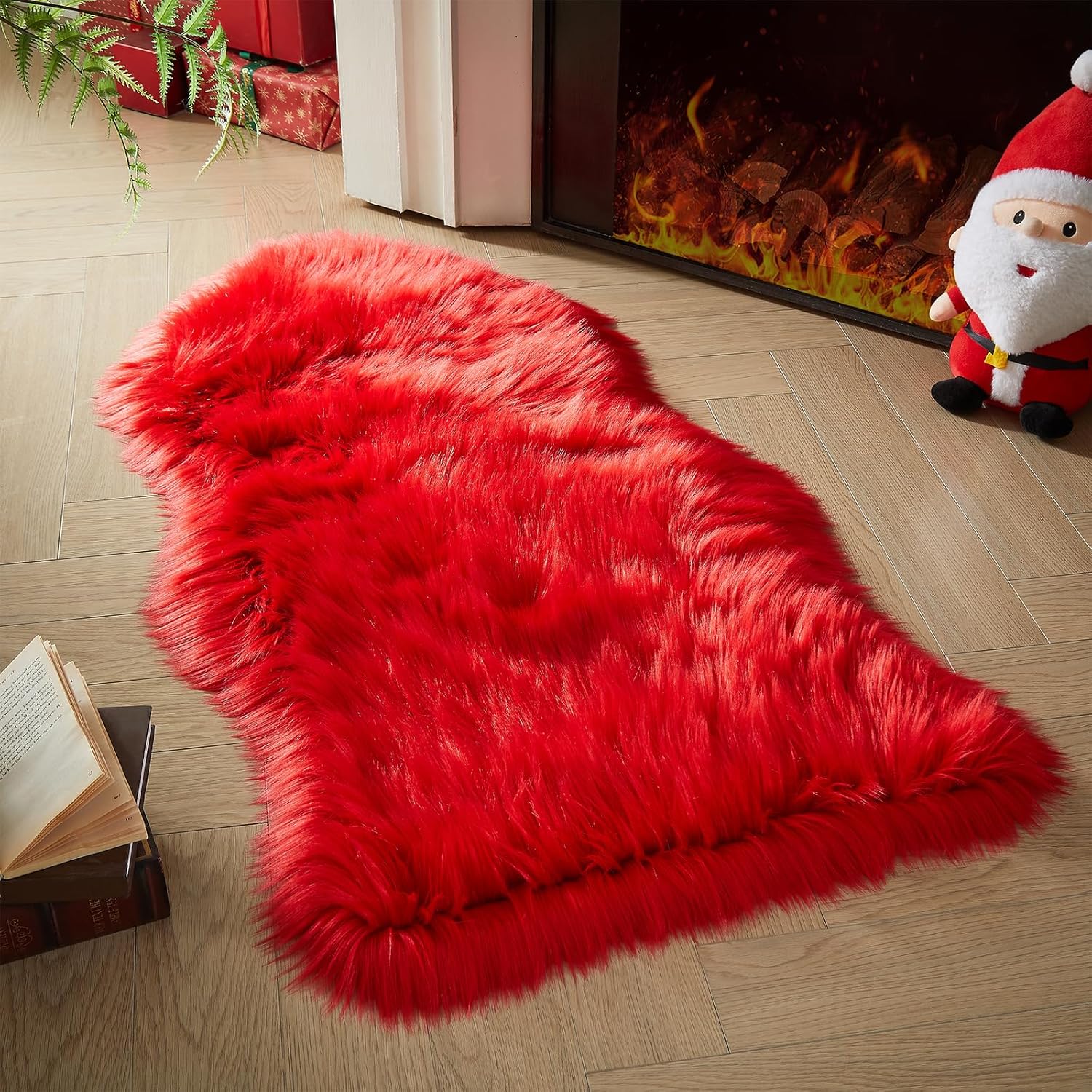 AMTOVO Faux Fur Rug, Red Area Rug, Fluffy Sheepskin Rug, Fuzzy Ultra Soft 2 x 4 ft Shag Rugs for Bedroom Sofa Throw Cushion Room Decor, Sheepskin