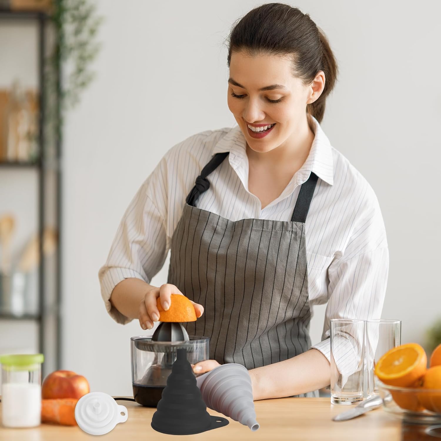 • High Quality Material: Our kitchen funnel are crafted from premium food grade silicone, free from BPA, resistant to deformation, and built to last. The silicone funnel withstand temperatures ranging from -40°C to 250°C, ensuring complete safety for your household