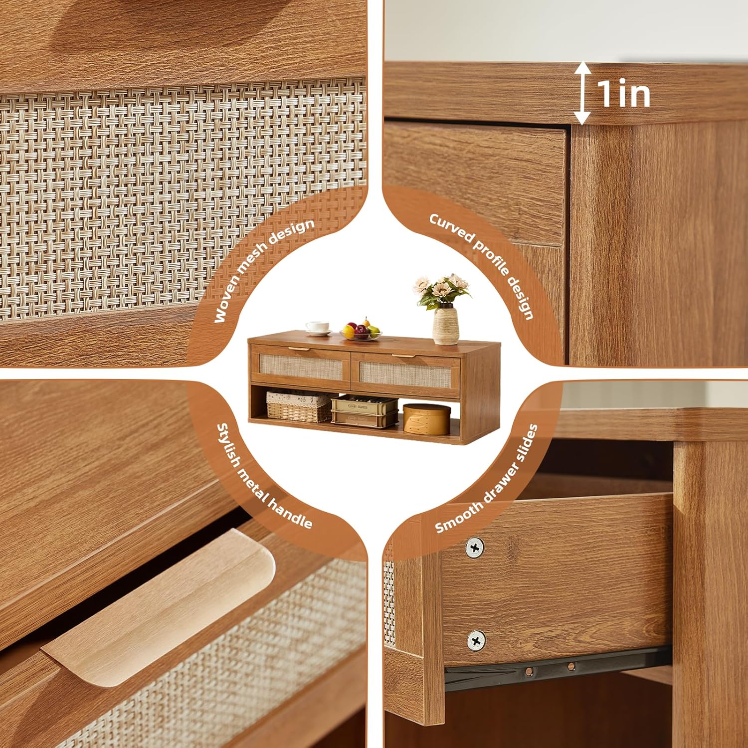 • Bohemian Rattan Coffee Table:Designed to complement the LEYAOYAO furniture collection, this bohemian-style center table for living rooms features an aged wood-grain finish and woven rattan panels. High-quality metal knobs and drawer runners contribute a modern or farmhouse aesthetic.