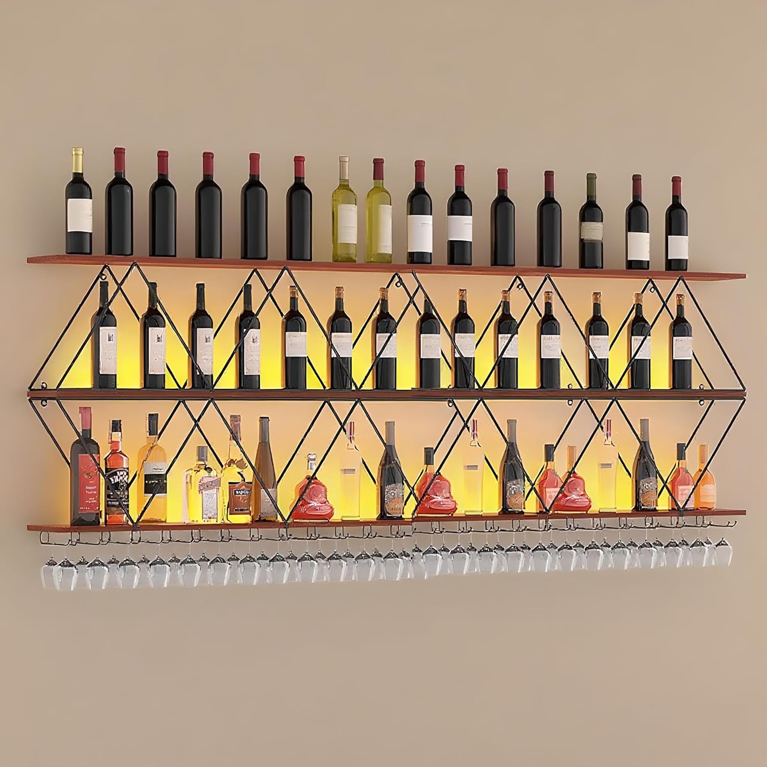• Enhance your wine display: This wall-mounted metal wine rack can display your wine collection, and its 3-tier design maximizes the use of space and adds a touch of elegance to your room.