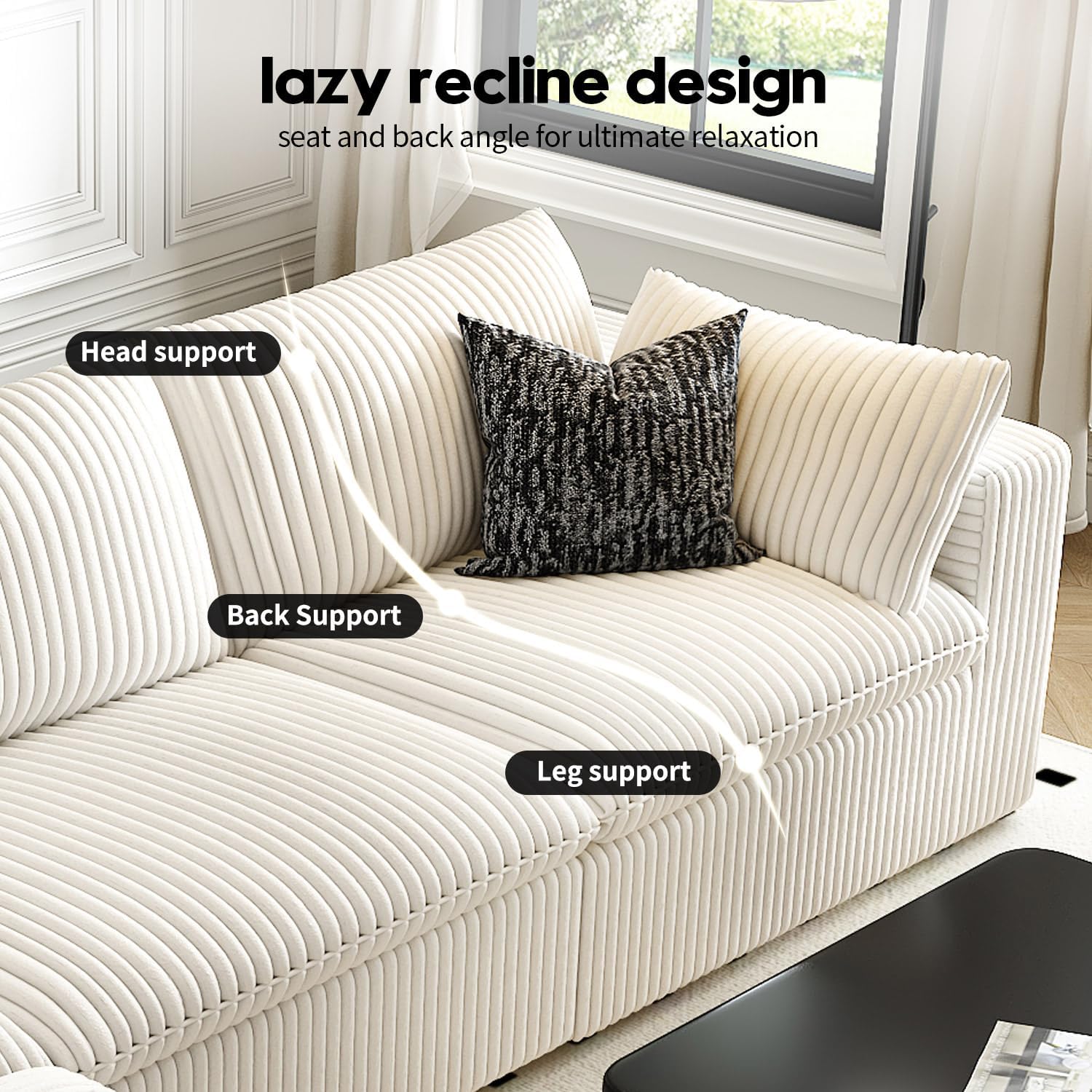 118" Cloud Couch Modular Sectional Sofa for Living Room,Modern Sofa with Deep Seat,3 Seater Boneless Couch,Comfy Upholstered Corduroy Couches for Apartment, Studio, Office,Bedroom,White