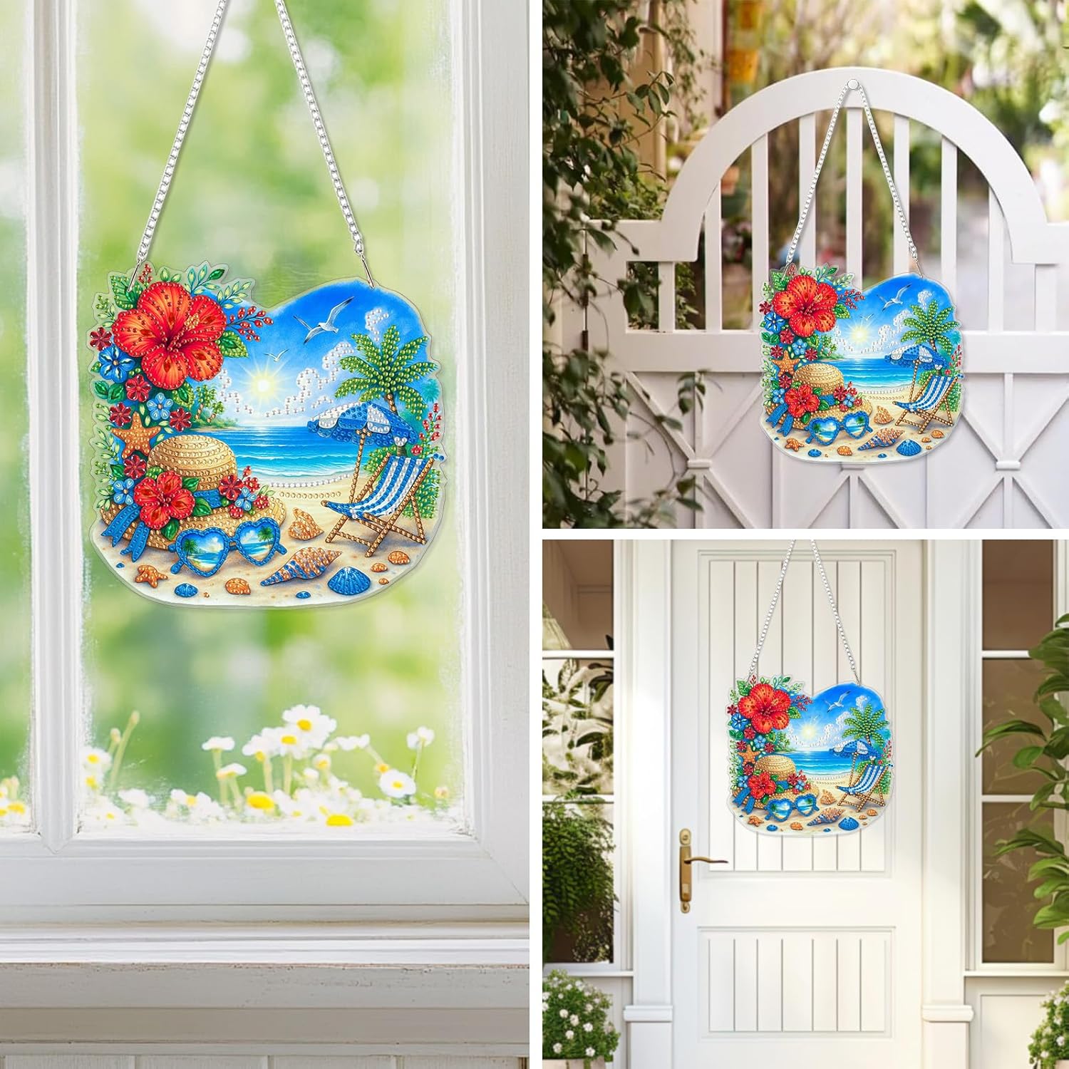 EOBROMD Diamond Hanging Art Kits for Adults, Beach Holiday DIY Special Shaped Rhinestone Kits for Adults, Diamond Art Painting Suncatcher, Window Pendants Home Garden Wall Hanging Ornament
