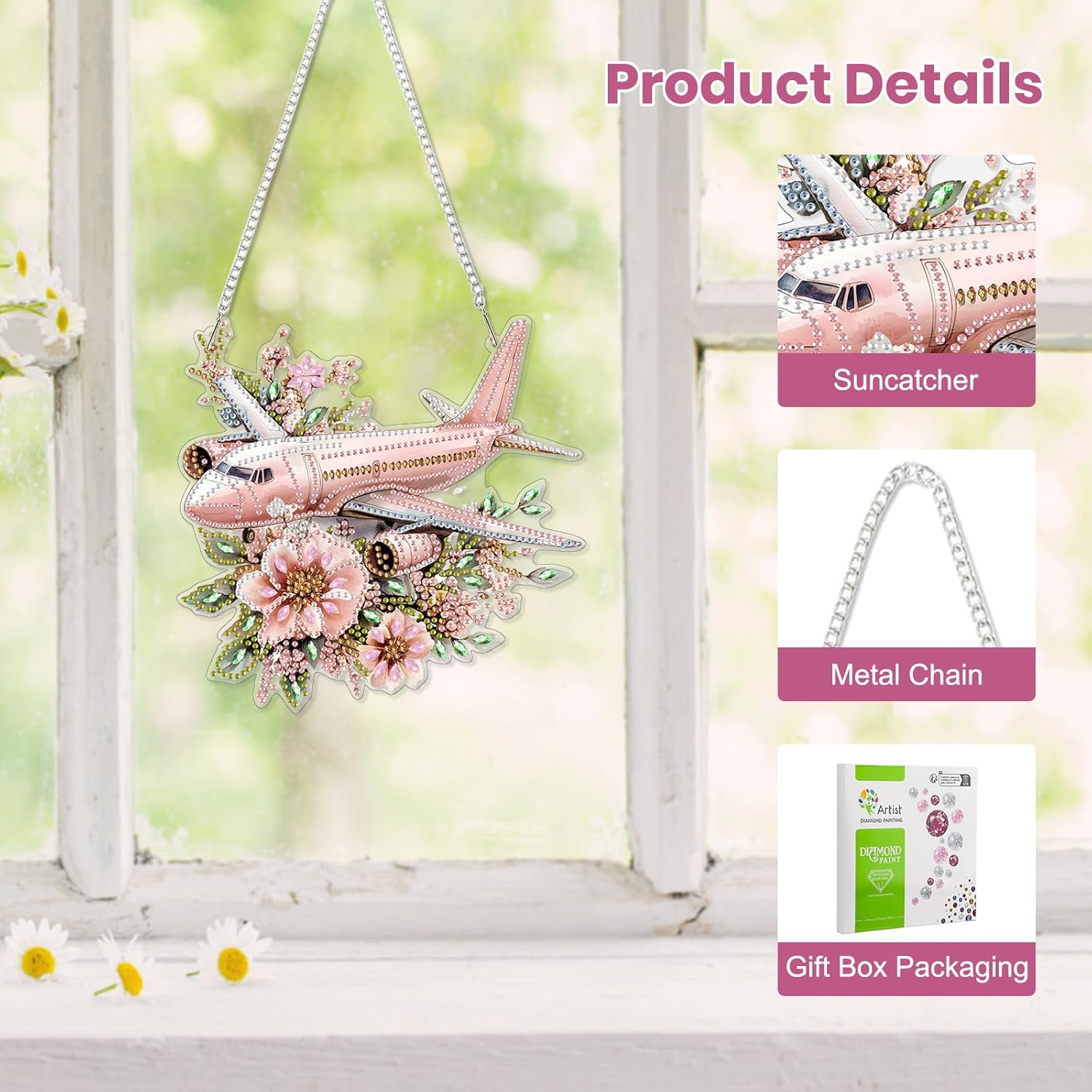 EOBROMD Diamond Hanging Art Kits for Adults, Diamond Art Painting Plane Flower Window Pendant Kits Suncatchers, DIY Special Shaped Rhinestone Adults, Home Wall Decor