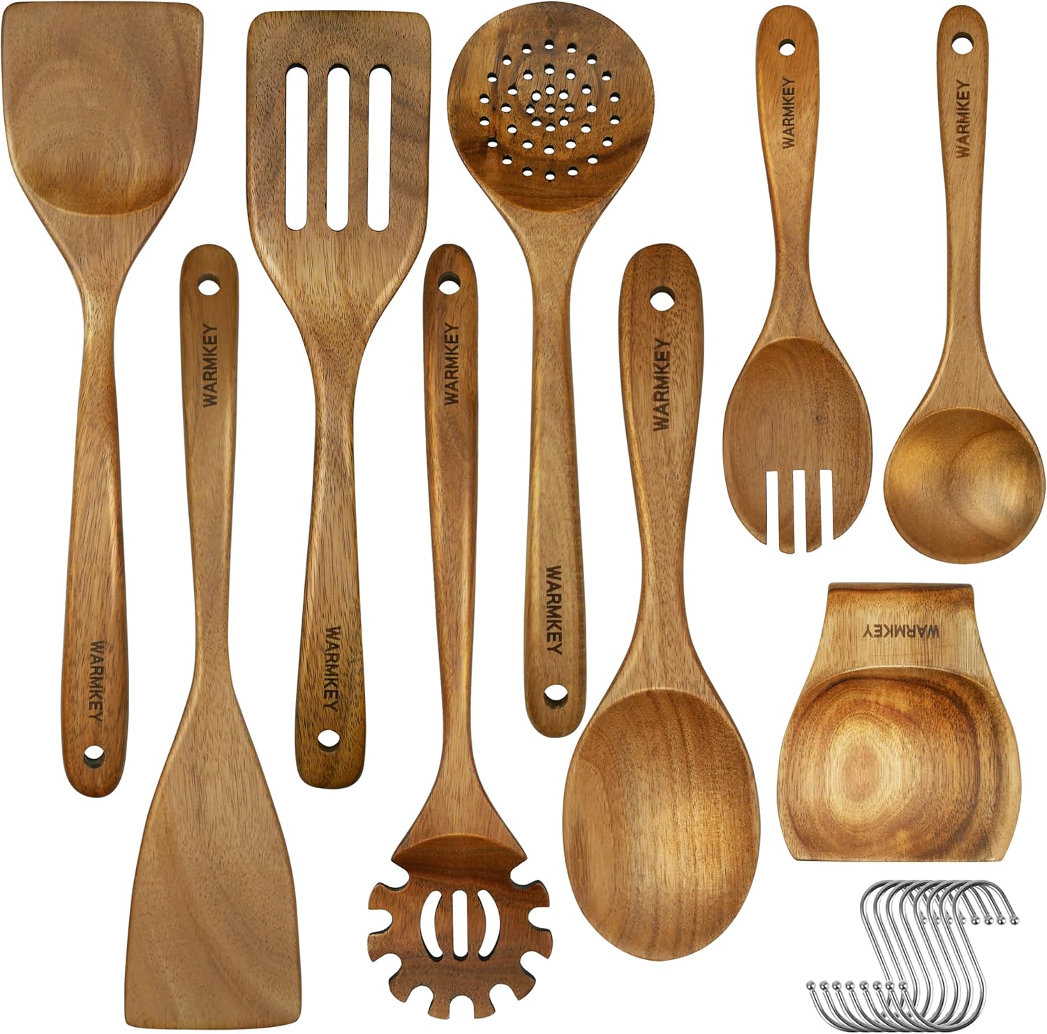 • 【Easy To Clean & Eco-Friendly】 Our wooden utensil sets are nonstick, easy to clean with warm or soapy water. This wooden utensils set is also completely biodegradble and decays fast than plastic ones. Definitely a great wooden kitchen utensils gift.