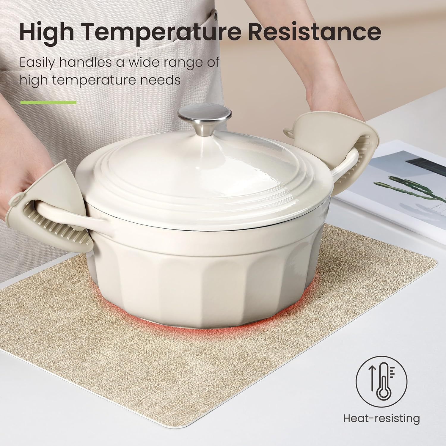 • PROTECT YOUR TABLE: Our placemats are 2 mm thick and can withstand the placement of hot items, protecting the table from hot plates and dishes. Their thickness gives them excellent water and stain resistance, protecting the table's cleanliness and integrity and enhancing your dining experience