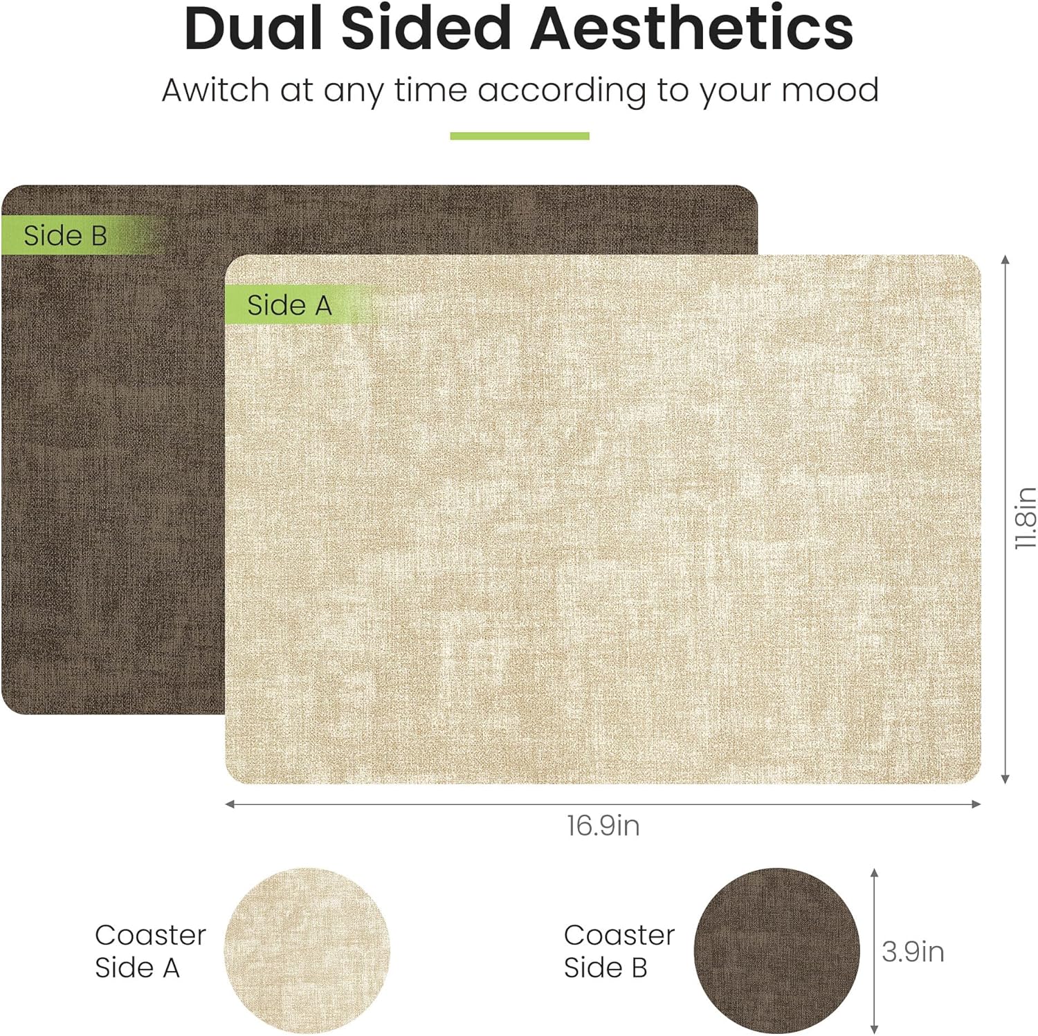 • COST-EFFECTIVE LEATHER PLACEMATS: Our faux leather placemats are made of high quality faux leather, which ensures superior quality and long-lasting durability. Designed with different colours on both sides, it is equivalent to having two different placemats, our placemats are reversible, so you can switch between the two colours at will depending on the occasion or mood. It also comes with a combination of coasters to protect the cups while providing a better dining experience for the diner