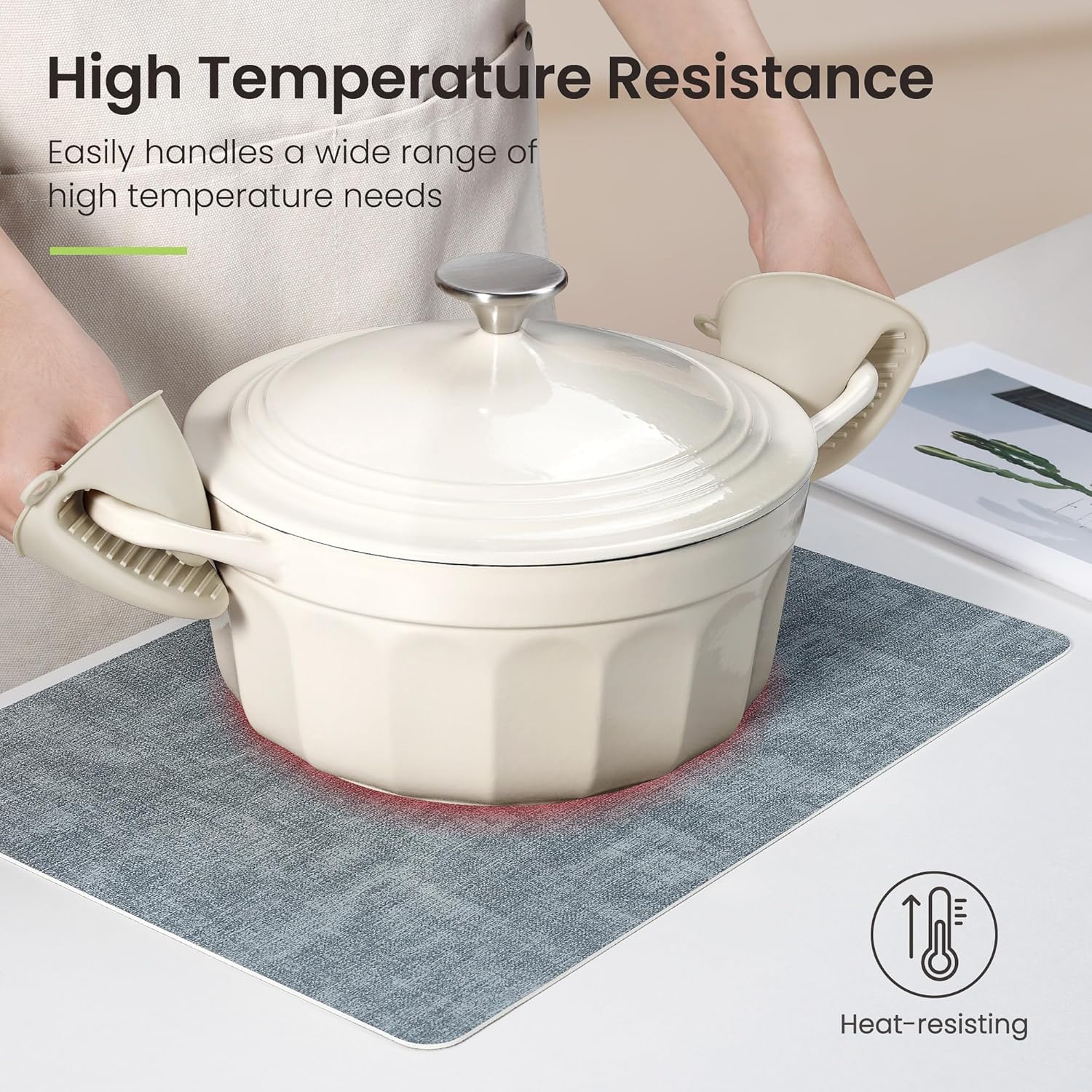 • PROTECT YOUR TABLE: Our placemats are 2 mm thick and can withstand the placement of hot items, protecting the table from hot plates and dishes. Their thickness gives them excellent water and stain resistance, protecting the table's cleanliness and integrity and enhancing your dining experience