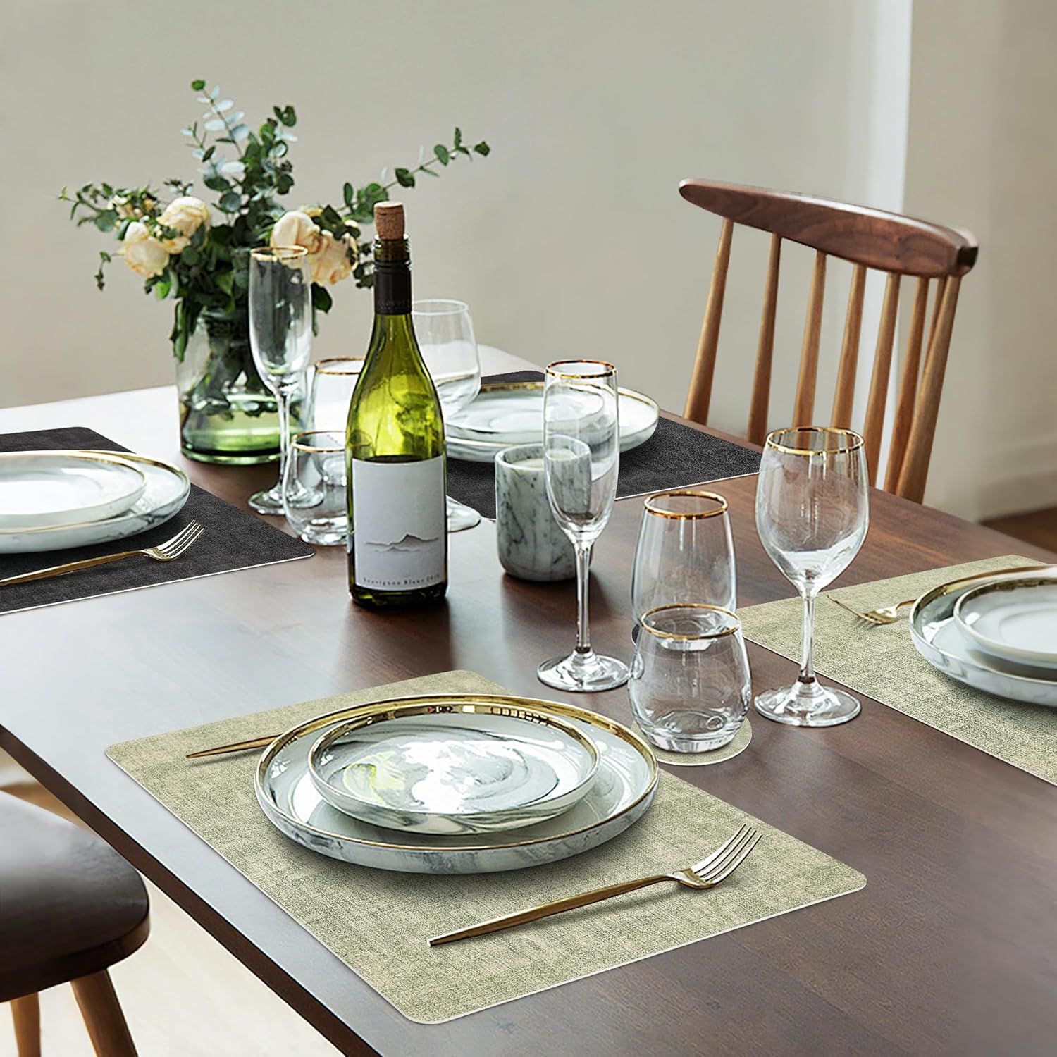 • SUITABLE FOR EVERY OCCASION: Our faux leather placemats are available in a wide range of fashionable colours, neutral colour design, simple and stylish, suitable for daily indoor and outdoor occasions, including restaurants, holiday parties, family gatherings, daily use and so on. Also a thoughtful choice for birthday gifts, Christmas gifts, housewarming, happy new year gift ideas